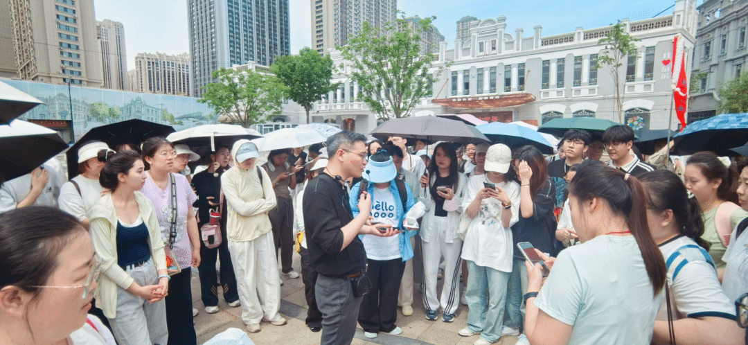 实习中选取代表性历史街区中华巴洛克历史文化保护街区进行考察。中华巴洛克历史文化保护街区是哈尔滨十大历史文化保护街区之一,是哈尔滨近代发展中历史最为悠久的地区,是哈尔滨民族工商业的发源地。同学们在巴洛克历史街区中考察了中西合璧的独特建筑风格,如:建筑临街立面采用巴洛克风格的豪华装饰(如罗马柱头、雕花窗户),局部图案融入中国传统吉祥元素(蝙蝠、石榴、牡丹等),背后空间为四合院布局,形成“前店后宅”的商住结构;考察了特色院落、胡同等物质文化资源;考察了老字号餐饮(如张包铺)、文创(松光里书店)、非遗工坊(老街泥匠核雕)、沉浸式体验(“尔滨故事”文旅项目)等富有传统气息的商业文化、餐饮文化和民俗文化等非物质文化资源和业态布局。