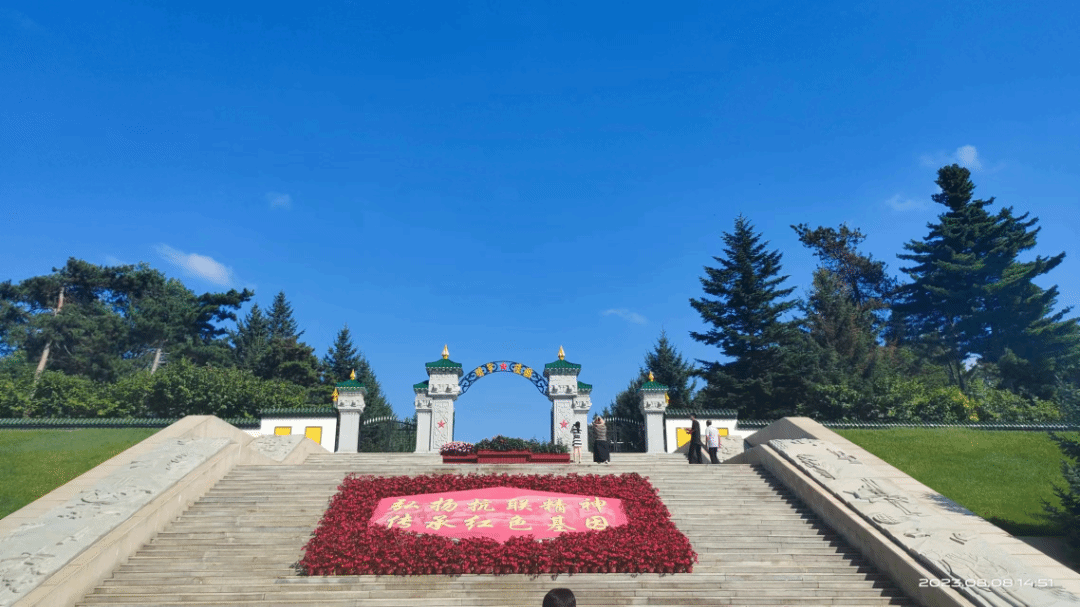 8月9日实习队伍来到了中朝边境最大的城市丹东,在鸭绿江畔英华山上,抗美援朝纪念馆巍然矗立。七十余年光阴流转,战争硝烟早已散去,但抗美援朝的记忆却无法忘却。作为全国唯一一座全面反映中国人民抗美援朝战争和抗美援朝运动历史的专题纪念馆,师生们从中触碰历史,了解更多鲜为人知的志愿军感人事迹,追忆那段波澜壮阔的战争岁月,致敬缅怀革命英雄先烈。