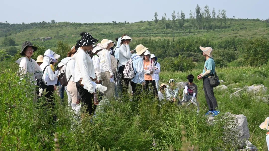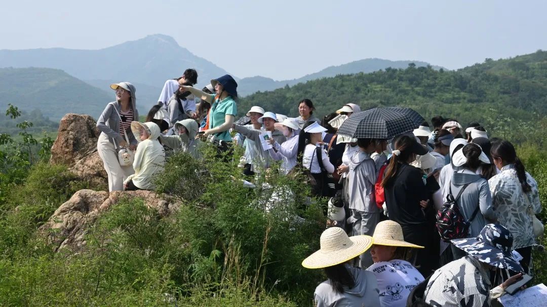 8月18日清晨,实习队在基地集合完毕后前往鸡冠山。为了帮助同学们更好地认识鸡冠山地层的出露情况以及汤河地堑的结构特点,带队教师选择了从鸡冠山北坡上南坡下的贯穿路线。