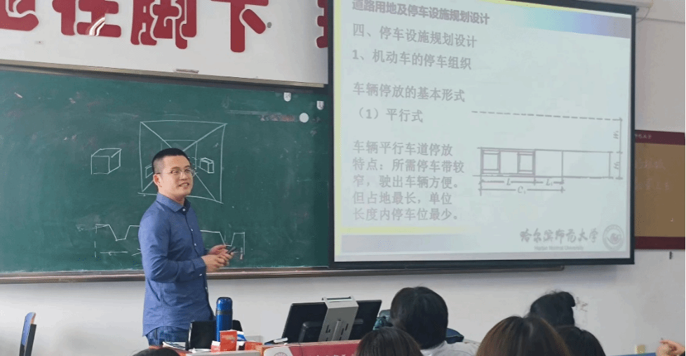 课上张鹏老师讲授了《居住区规划》的道路设计规划,首先, 他介绍了居住区道路规划中机动车停车组织的基本形式,由此引发了学生思考各个组织形式对居住区用地与居民停车影响。课堂异常活跃,学生踊跃发言,主讲教师生动有趣地阐述不同组织形式的影响,用形象生动的肢体语言及幽默易懂的话语,轻松形象地让学生理解教学内容,并引发学生深入思考。