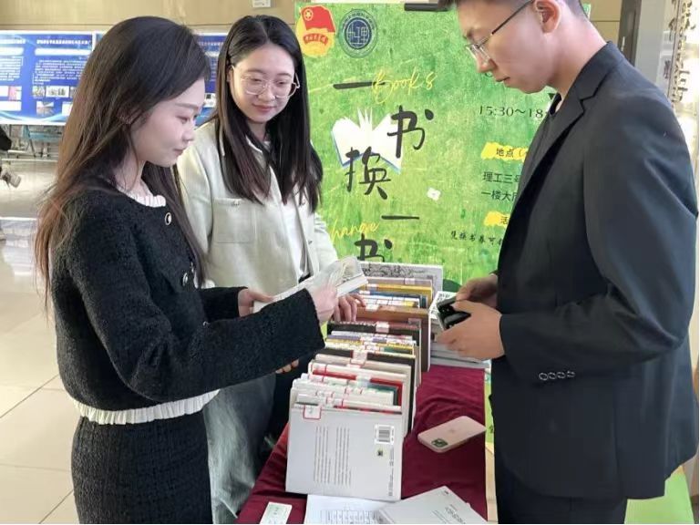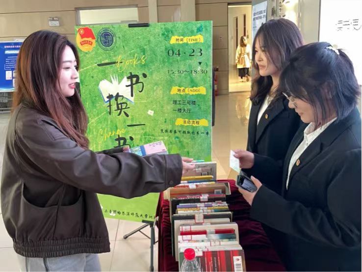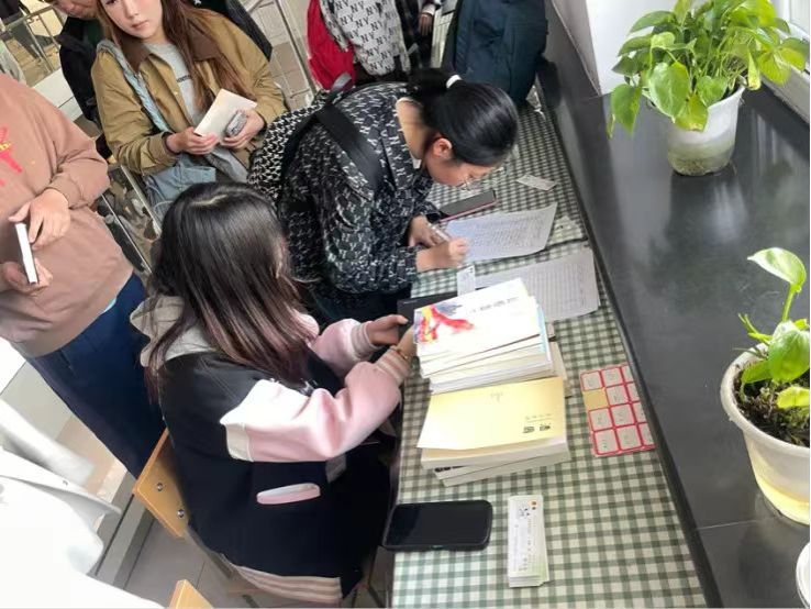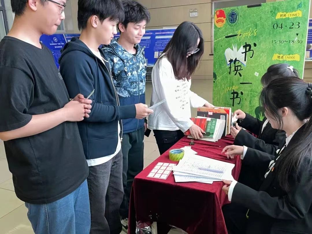 在4月23日——世界读书日的当天,参与活动的同学纷至沓来,学院的各位老师也积极参加此次活动,大家按照“换书劵”上的编号领取自己的新图书,同学们看着陌生的书籍,眼神中溢出了欣喜之情。翻开书页,里面夹着原主人温暖的寄语,同学们逐句品读,体会到了原主人真挚的感情与新书的含义。在书籍交换的过程中,既实现了纸质图书资源的循环利用,又让书籍在同学们之间传递,实现了有温度的知识共享和文化传播。