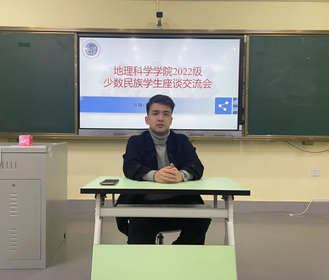 为深入贯彻落实党的二十大精神及中央民族工作会议精神,准确把握我院2022级少数民族学生的思想动态和学习生活状况,引领少数民族学生牢固树立中华民族共同体意识,德智体美劳全面发展,2024年3月25日,地理科学学院2022级召开少数民族学生座谈会,会议由2022级辅导员李昀东主持。