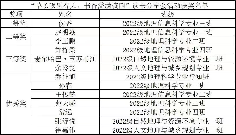 至此,“草长唤醒春天,书香溢满校园”读书分享会活动落下帷幕,让我们恭喜以下获奖的同学: