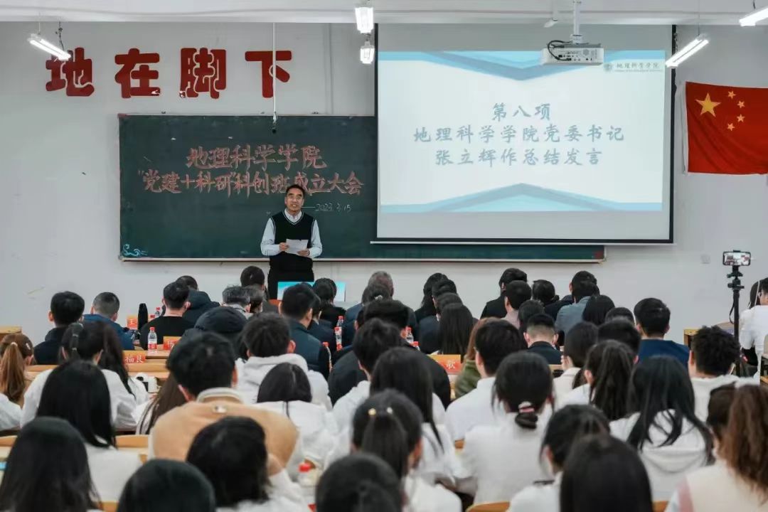 至此,地理科学学院“党建+科研”科创班主任制度建立完成。未来,在我院师生共同努力下,随着制度不断完善,深入贯通学生专业学习、创新实践和生涯规划,用高质量政策引领高质量科研,走出大学生创新创业新型发展之路,跑出科研创新的加速度,让党旗高高飘扬在科研创新的第一线,不断推动学院的科创工作再创佳绩。