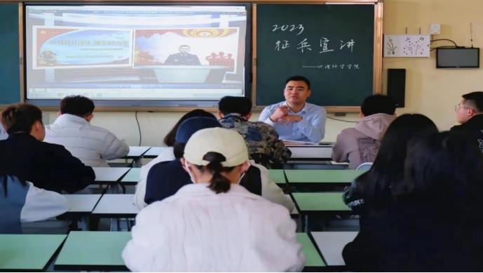 结合学校征兵宣传工作,地理科学学院组织开展征兵宣讲系列讲座。以“燃青春之火,铸强军之梦”为主题,结合优秀入伍学生的典型事迹,培养大学生保家卫国的社会责任感,激发大学生参军入伍的热情。