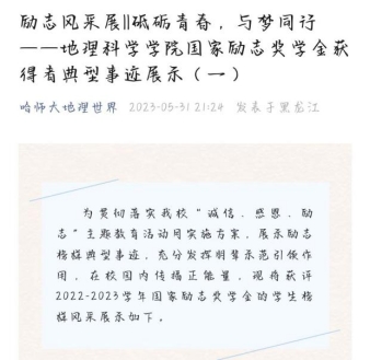 地理科学学院积极响应《KY.COM大力开展高校学生资助诚信教育主题活动的通知》(教助中心〔2023〕7号)号召和《哈尔滨师范大学2022-2023学年“诚信、感恩、励志”主题教育活动实施方案》文件精神,紧密围绕立德树人根本任务,坚持把促进家庭经济困难学生成长成才作为学生资助工作的出发点和落脚点,增强当代大学生的使命意识和责任担当,于2023年5月12日—6月1日认真组织推进2022-2023学年“诚信、感恩、励志”主题教育系列活动。