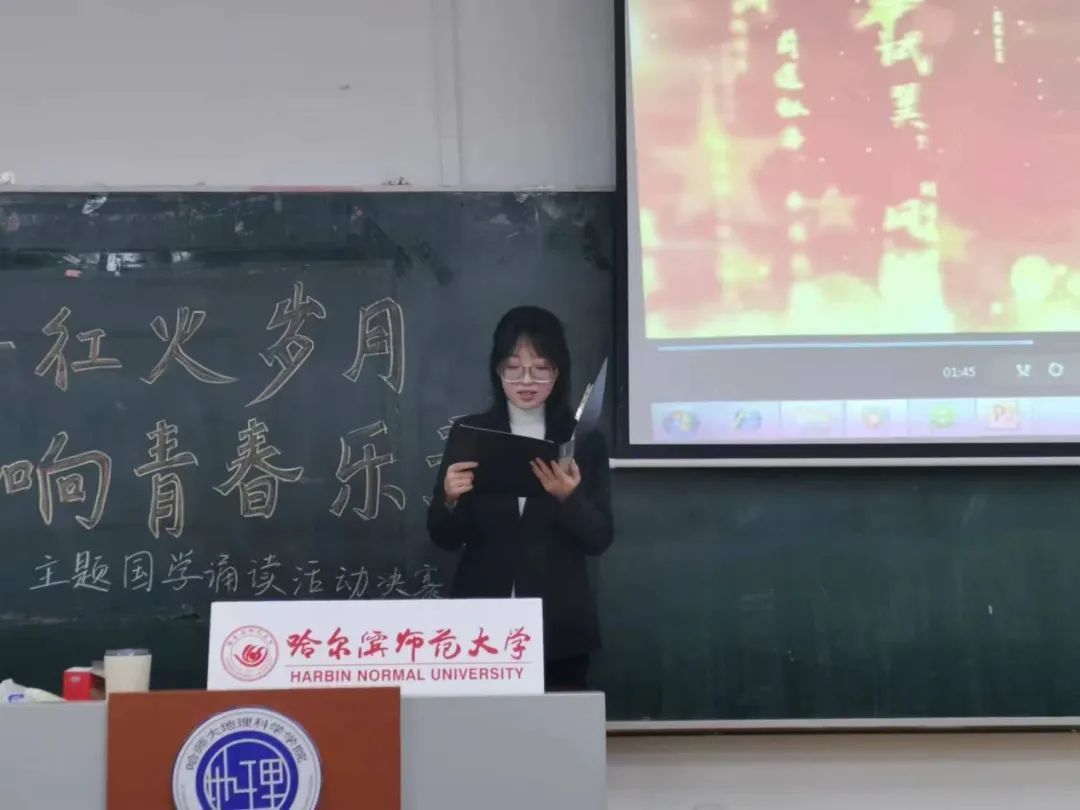 同学们积极响应本次活动,前期,工作人员对提交的诵读视频进行初审,评选出20位选手晋级线下比赛。比赛现场,选手们各有巧思,各展风采,共展诗情,共享诗会,以抑扬顿挫、声情并茂的朗诵将现场气氛一次又一次推向高潮,以真挚的情感与饱满的热情献上了一场视听盛宴,充分展示了地理学子坚定的理想信念和青春风采。