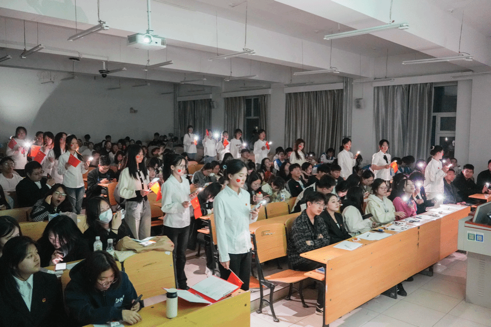 在合唱环节,大家以饱满的热情和激昂的旋律,展现了青年学子对祖国的热爱和对未来的憧憬。
