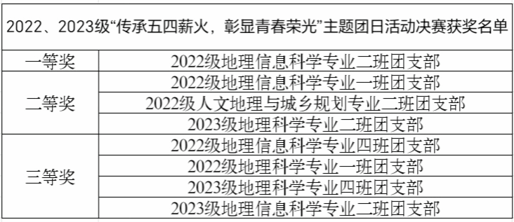 经过各团支部激烈的角逐,最终本次团日活动决赛获奖名单如下: