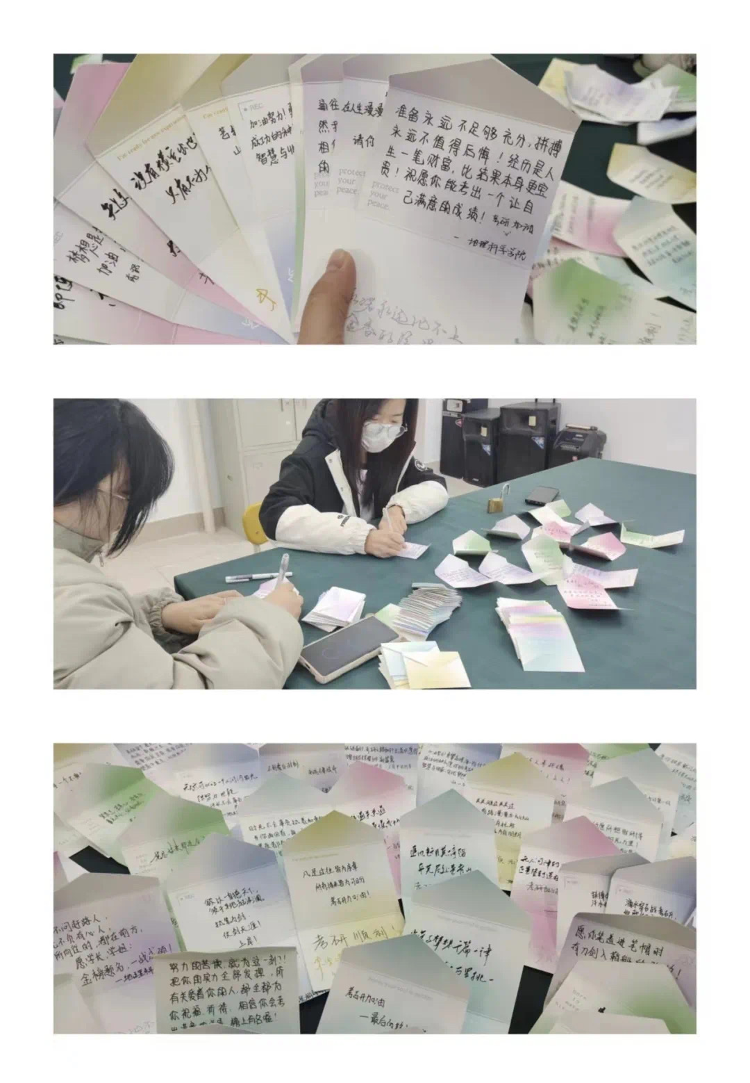 地理科学学院学生会易班与心理部制作“研途寄语”,前往图书馆、考研自习室、学生寝室发放承载着学院期盼、学弟学妹加油打气的暖心贺卡。愿这些美好能够化作你们勇往直前的动力,成为你们笃行致远的决心,给予你们信心十足的底气。