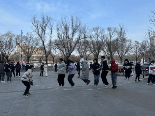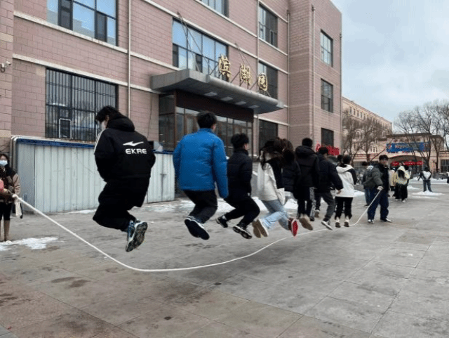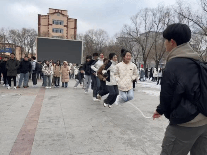 同学们身姿矫健,动作轻盈,随着绳子的摆动,敏捷地跳跃着,动作整齐划一。同学们个个精神抖擞,全心投入,现场气氛热烈非凡。场上呐喊声、加油声此起彼伏。
