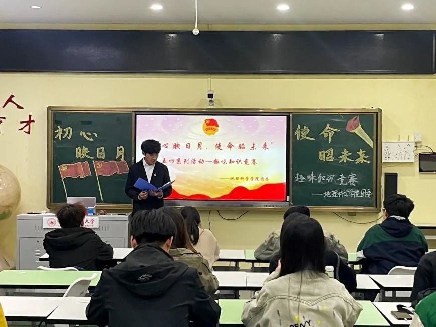 为深入推进党的创新理论青年化,调动全体同学积极学习党史知识,提高政治素养,地理科学学院团委于2024年4月29日在理工三215室举办“初心映日月,使命昭未来”趣味知识竞赛活动,以赛促学,引导广大青年继承发扬“五四”精神,坚定理想信念,听党话、感党恩、跟党走,争做“有理想、敢担当、能吃苦、肯奋斗”的新时代好青年。