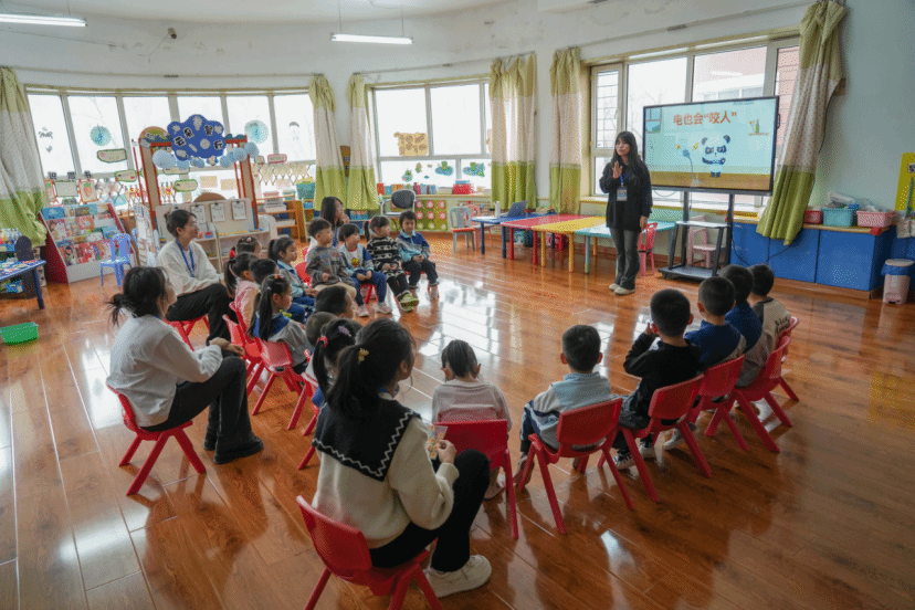 志愿者“小老师”将授课主题“电”拟人化来吸引小朋友们的注意,接着通过播放动画短片、安全标识警示、绘画描摹等环节让小朋友们了解“电”的重要性,以及如何在日常用电过程中保护自己,提高安全用电的警觉性,培养小朋友的自我保护意识。