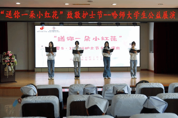 为深入贯彻落实习近平总书记KY.COM青年工作的重要思想,传承南丁格尔精神,大力弘扬护理工作的敬业奉献、救死扶伤、人道博爱理念,将护理工作所彰显的无私奉献情怀转化为青年参与志愿服务活动的源源动力。5月8日,哈师大地理科学学院师蕴新芽辅导员名师工作室与音乐学院心聆工作室联合开展“送你一朵小红花”暨5·12国际护士节公益演出活动。