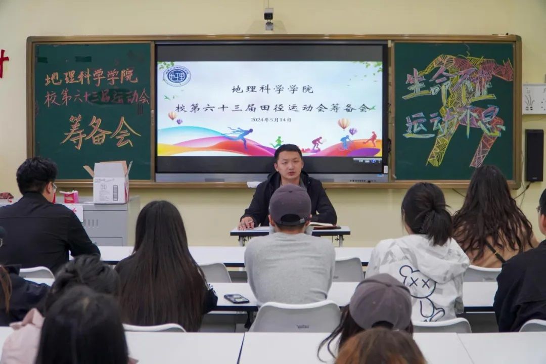 为贯彻落实校第六十三届田径运动会工作部署会议精神,保障学院运动会期间各项工作安全、平稳、有序、高效进行,增强学院凝聚力,提高学生安全意识,5月14日下午,地理科学学院召开运动会筹备会议,2023级辅导员、院学生会指导教师刘国英主持会议并讲话。