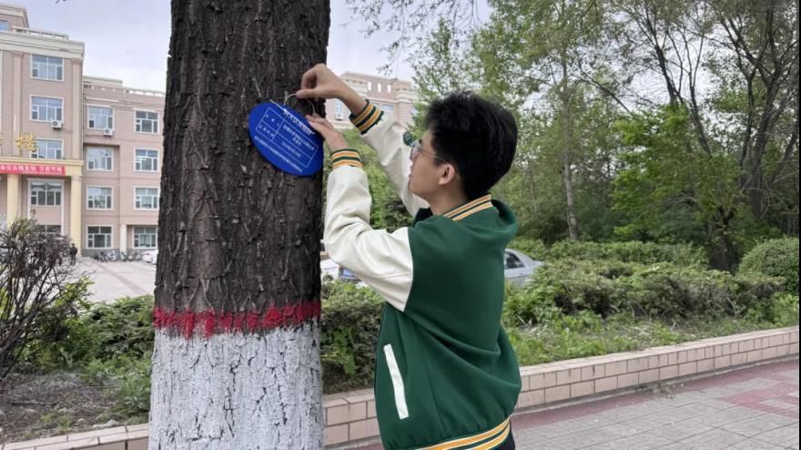 十年树木,百年树人。郭昊昕老师展开介绍了本次活动的意义,校园里的一草一木,见证了学子求知的青春芳华;一枝一叶,镌刻了共同的校园记忆。此次毕业生认养树木活动,不仅支持了学校的生态发展,也是维系着学子与母校的精神纽带。随后,毕业生代表们在理工三号楼楼前认养了一颗树木,亲手为自己的树挂上认养铭牌,为学院种下一颗希望的“种子”,希望以另一种方式回报母校的栽培之恩。毕业生们表示,这片充满知识与活力的土地,曾是青春岁月中最温暖的港湾。在母校的栽培下,我们如同小树苗般汲取着知识的养分,茁壮成长。在离开这片熟悉的土地之际,心中充满了感激与不舍,并相信以后无论身处何地,都会铭记这份深厚的情谊,共同为母校的发展贡献力量。