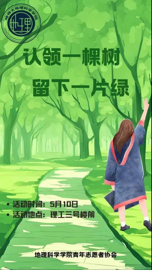 地理科学学院青年志愿者协会于2024年5月14日在理工三号楼楼前举办了“认养一棵树,留下一片绿”植树活动,2020级辅导员郭昊昕老师出席本次活动,2020级部分毕业生代表参与。