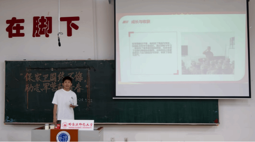为加强大学生的国防教育,加大征兵宣传力度,营造爱国强军的校园文化氛围,激发大学生参军入伍的热情,培养大学生保家卫国的社会责任感,地理科学学院学生会勤工部结合学校征兵宣传工作,挖掘退役复学学生的典型事例,并积极展开宣传活动,于2024年5月22日在理工三号楼122和220教室组织开展退役复学大学生典型事迹宣讲会,2023级学生参会。