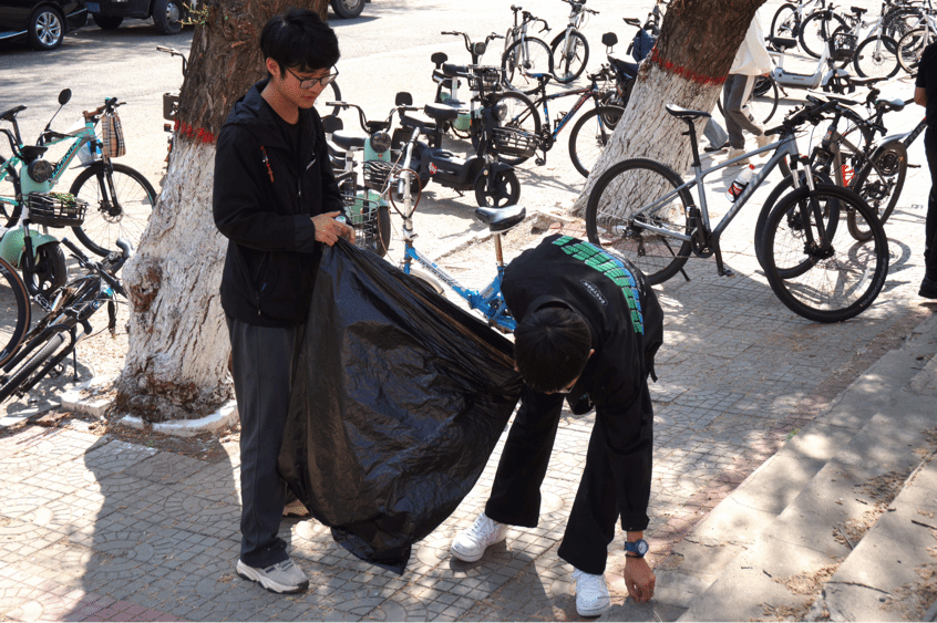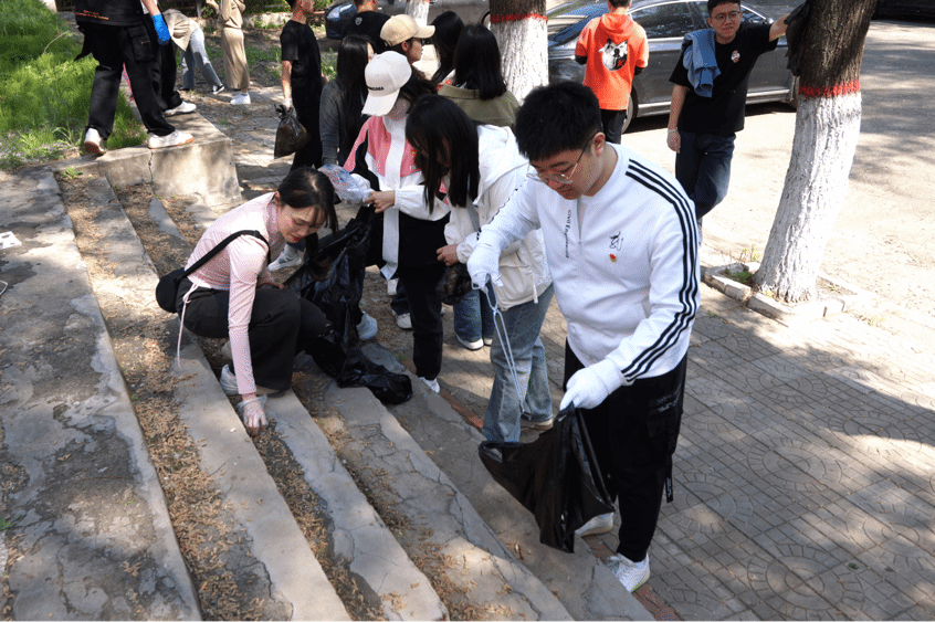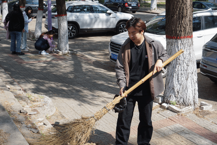 在本次劳动教育实践活动中,学院师生共同前往学生九公寓,对公寓周边的甬道和草丛展开了全面而细致的清理工作。大家分工协作,默契配合,有的手持扫帚和垃圾袋,细心地扫去地面上的各类杂物;有的则俯身拾捡垃圾,并将其一一放入垃圾袋中。整个劳动过程井然有序,无论是大面积的清扫还是角落的细致处理,都体现出了师生们对劳动任务的认真态度和高效执行力。尽管当天气温较高,但师生们毫无怨言,积极投入劳动,他们互相协助,共同努力,营造出了温馨而充满活力的劳动氛围。随着清理工作的逐步推进,原本杂乱的甬道和草丛逐渐恢复了清爽和美丽,同学们也在劳动的过程中体会到了劳动最光荣、劳动最崇高、劳动最伟大、劳动最美丽的深刻内涵。