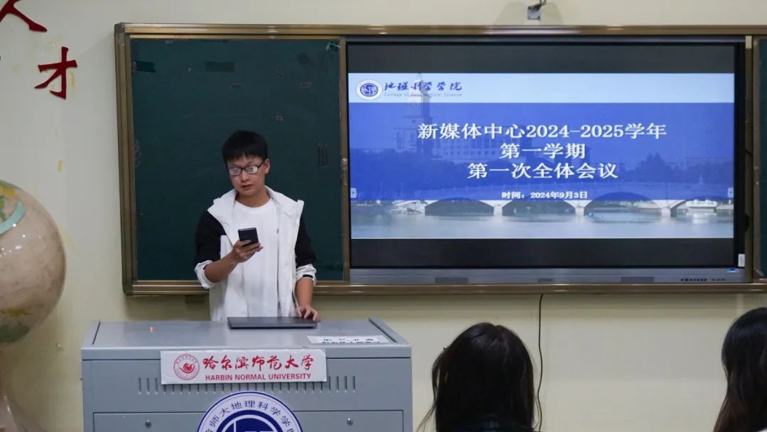 为高质量推进我院新媒体中心新学期工作有序进行,切实担当好学院各项工作和活动宣传的“门面”与“喉舌”,强化学生干部队伍建设,部署迎新相关工作。9月4日,地理科学学院新媒体中心在理工三号楼215会议室召开2024年秋季新学期第一次全体大会,指导教师李昀东出席会议,会议由新媒体中心主任何青璇主持,全体成员参会。