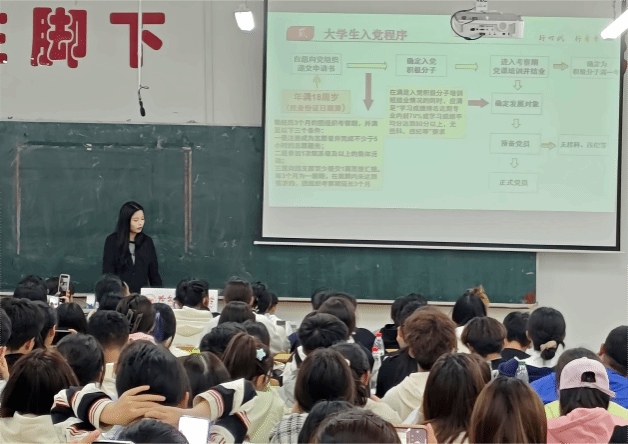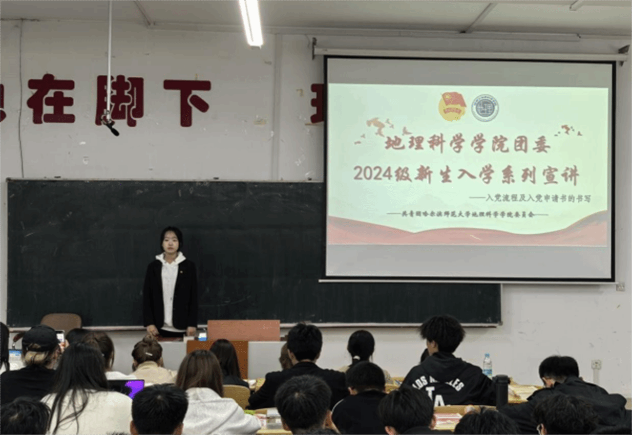 为贯彻落实新生入党知识普及工作,帮助广大青年学生铸牢理想信念根基,提升对党的认识,坚定政治信仰,端正入党动机,引导青年学子积极向党组织靠拢,地理科学学院团委党建部于9月23日在理工三号楼122、220室开展《2024级新生入学教育系列宣讲——入党流程及入党申请书的书写》。本次宣讲对大学生入党条件、入党程序以及入党申请书写作方法进行了详细阐述,并对同学们提出的问题逐一耐心解答,希望新生们从思想上和行动上积极向党组织靠拢,以实际行动践行党的宗旨。