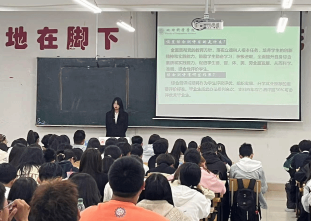 为教育引导新生对《哈尔滨师范大学学生综合测评实施办法》的认识和了解,促进新生德智体美劳综合素质全面发展,明确大学成长目标,地理科学学院团委组织部于9月25日在理工三号楼122、220室开展《2024级新生入学教育系列宣讲——学生综合测评分数管理》。本次宣讲从综合测评目的与作用、计分方法、评分标准三个方面详细讲解综合测评实施办法,鼓励同学们努力提高科学文化素养、积极参与社会实践和志愿服务等活动,成为学术成绩卓著、实践能力过硬、思想品德高尚的新时代人才。