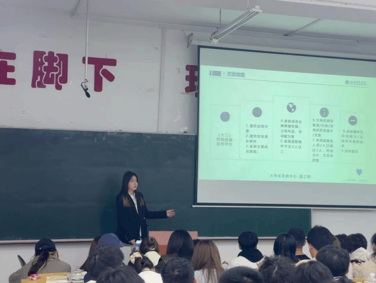 为全面落实立德树人的根本任务,加深2024级新生对资助政策的认知,进一步加强和规范家庭经济困难学生认定工作,将国家资助政策落在实处,助力家庭经济困难学生顺利完成学业,地理科学学院于2024年9月23日19:00在理工三122和220教室开展家庭经济困难认定及相关资助政策宣讲会。本次会议由地理科学学院大学生发展中心指导教师彭琳参与指导,大学生发展中心勤工部部长付明新主持宣讲,2024级全体同学参会。