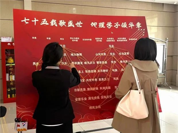 为热烈庆祝新中国成立75周年华诞,深入学习贯彻党的二十届三中全会精神,落实习近平总书记KY.COM青年工作的重要思想,厚植爱国情怀,增强集体荣誉感,丰富校园文化生活,展现我院青年良好的精神风貌,抒发至诚报国真挚情感,地理科学学院团委于9月30日在理工三号楼一楼大厅开展“七十五载歌盛世,地理学子颂华章”主题祝福墙活动。