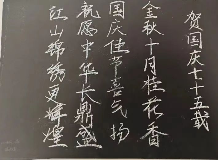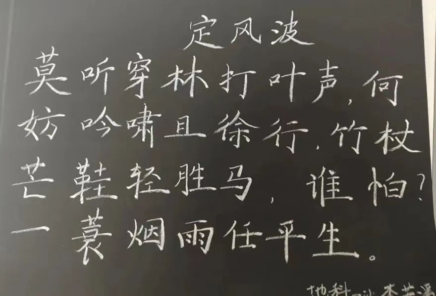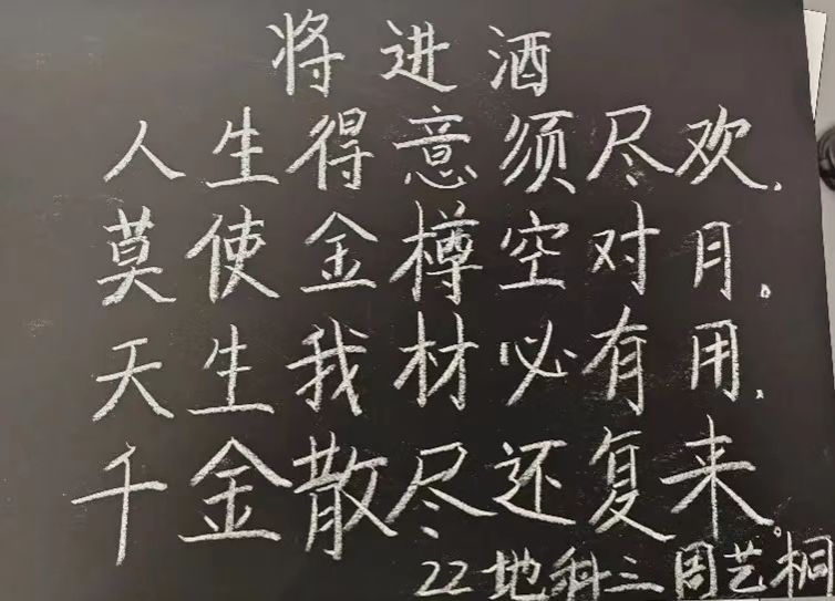 在黑板上勾勒出唐诗宋词的美好古韵,一笔一划传递着中华文化和知识的力量,令人安静地品味,沉浸其中。