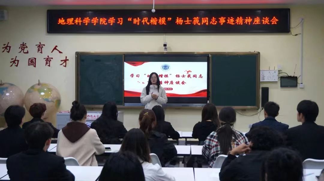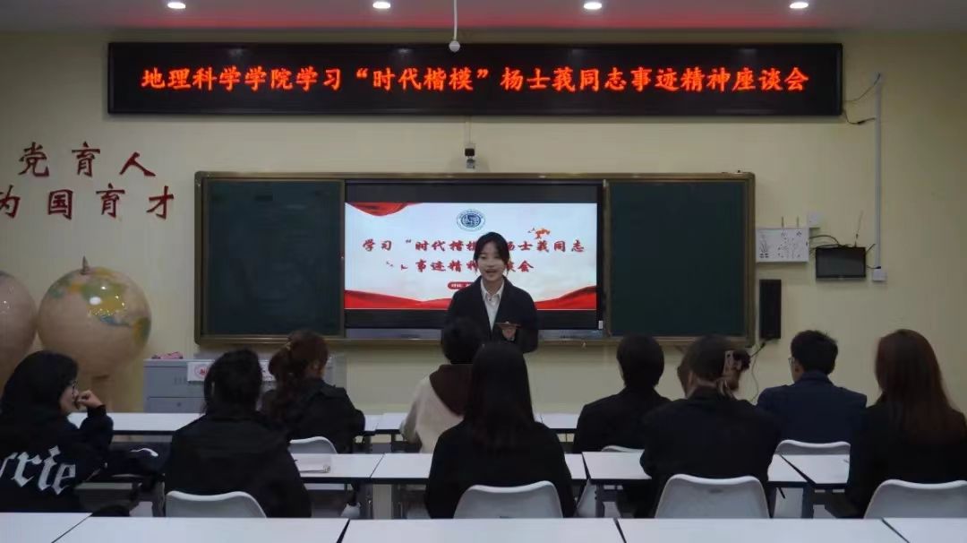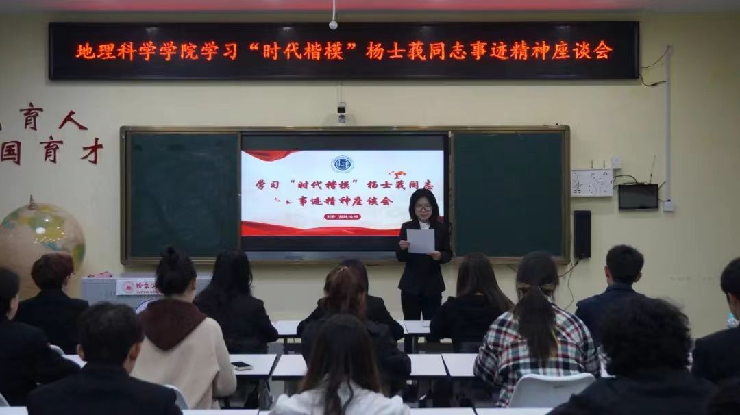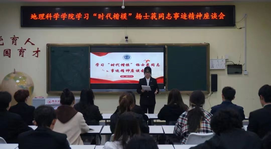 学习时代楷模,汲取奋进力量。为积极响应学校党委号召,大力弘扬科学家精神、教育家精神,引领青年学生厚植家国情怀,矢志拼搏、团结奋进,2024年10月10日,地理科学学院在理工三号楼215室召开学习“时代楷模”杨士莪事迹精神座谈会,各年级学生代表参会,座谈会由辅导员魏钰主持。
