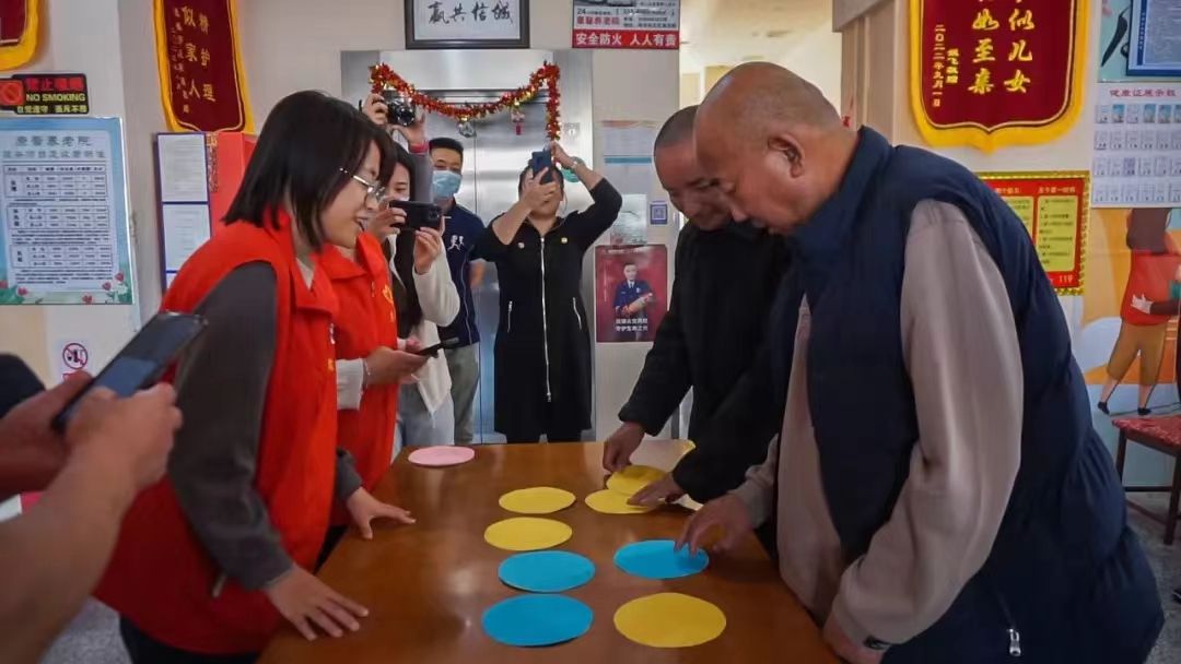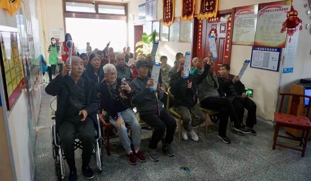 随后,一场欢乐的智力风暴席卷而来。在《翻翻乐》和《打地鼠》趣味比赛中,老人们展现出了惊人的智慧与活力。他们或凝神思考,或欢声笑语,动作迅速,完全沉浸在游戏的乐趣之中。这一刻,年龄不再是界限,智慧与快乐成为了共同的语言。欢笑喝彩声此起彼伏,整个养老院都沉浸在欢乐的氛围中。