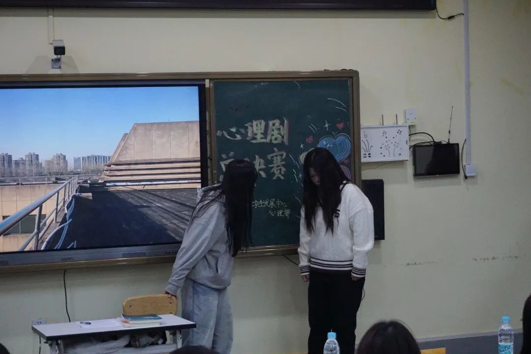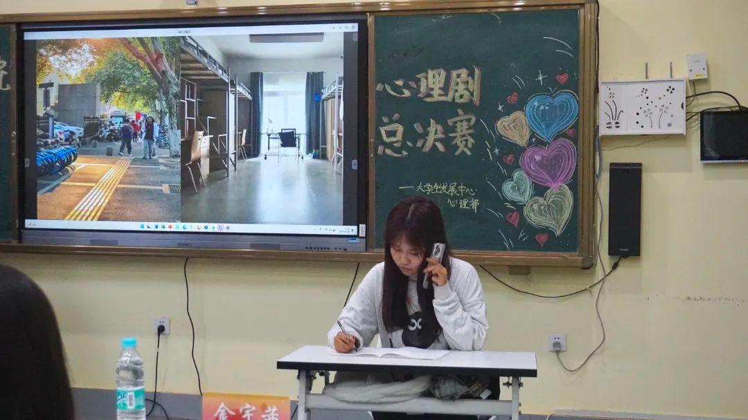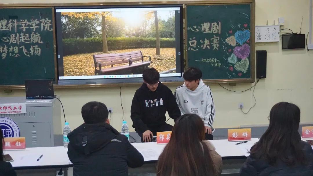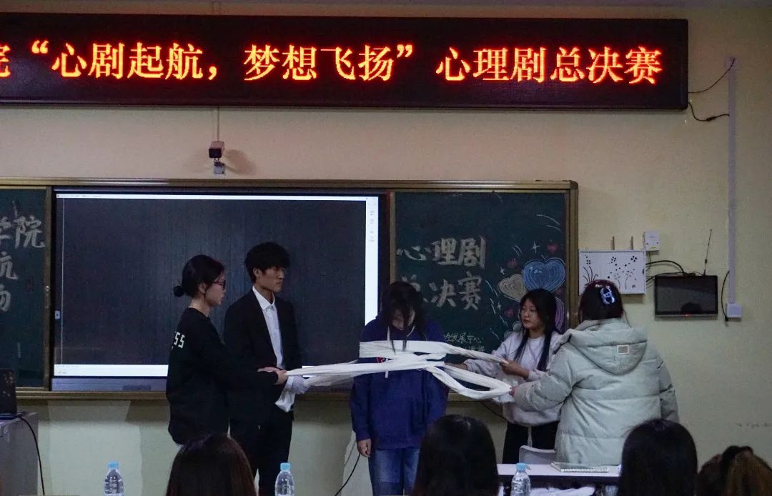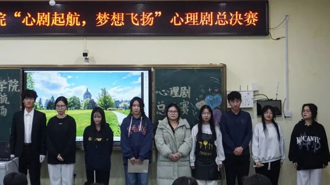 (王博涵 孙悦/文)探索心灵,助力成长。为引领我院学子深入探索内心世界,加强心理素质,培养坚韧不拔、积极向上的心理品格。2024年11月20日17:00,地理科学学院大学生发展中心心理部于理工三号楼215会议室举办“心剧起航,梦想飞扬”为主题的心理剧总决赛。本次总决赛基于剧情内容、表演技巧、舞台效果及观众反应等多维度综合性考量后确定6支队伍晋级。本次总决赛由大学生发展中心主任于航主持,地理科学学院团委副书记、2024级辅导员郭昊昕,大学生发展中心指导教师、辅导员彭琳,辅导员金宇茜、李昀东、魏钰出席本次比赛并担任评委。