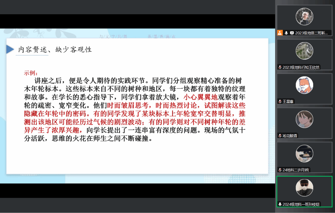 此次文笔训练营讲座圆满结束,同学们语言组织能力得到增强,综合写作思维得到一定提升,文笔提升训练营活动将持续高质量开展,陪伴大家走进文字的暖冬,帮助同学们在写作方面百尺竿头、更进一步!