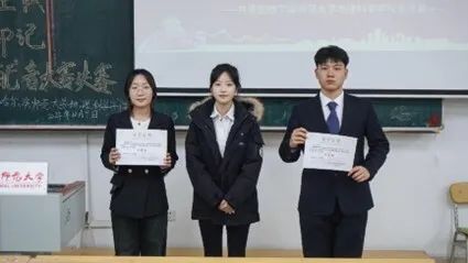 为深入贯彻习近平新时代中国特色社会主义思想,全面落实党的二十届三中全会精神,深切缅怀先辈壮举,弘扬爱国主义精神,以激昂斗志纪念中华民族伟大复兴进程中的光辉节点,地理科学学院团委于2024年12月9日在理工三号楼220室举办“品味红色经典,追寻红色印记”红色经典配音大赛。地理科学学院学生兼职团委副书记孙若雨、哈尔滨师范大学广播电台台长张辉杰、团委组织部部长董思妍、陆子妍出席本次比赛担任评委。