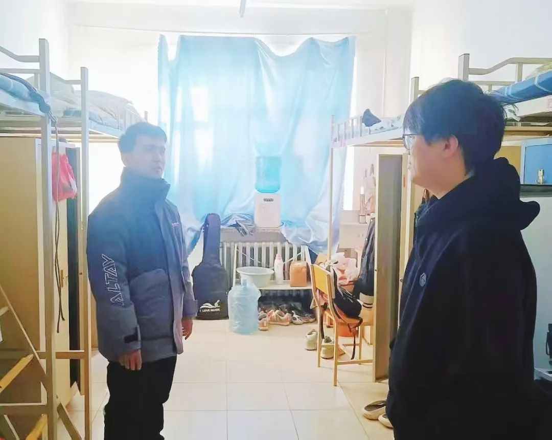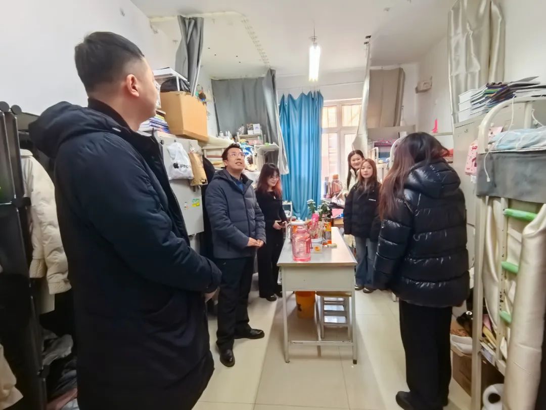 为深入贯彻落实《哈尔滨师范大学大学生思想政治教育“112349”工作模式实施方案》,切实加强新学期学生宿舍阵地建设,掌握学生返校情况,了解学生思想动态,营造整洁、文明、安全、和谐的学习生活环境,3月2日至3日,地理科学学院党委副书记代起君带领全体辅导员走访学生公寓,各年级辅导员对全部学生宿舍进行走访检查。