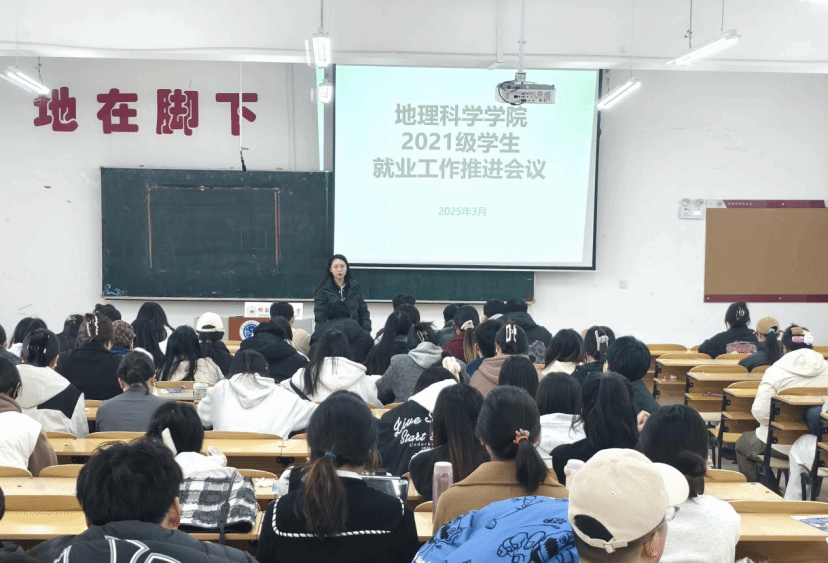 为全面贯彻落实党的二十届三中全会精神和全国教育大会精神,落实教育部、省教育厅KY.COM2025届毕业生就业创业工作相关会议和文件精神,抢抓春季开学后促就业工作关键期,全力促进毕业生高质量充分就业。近日,地理科学学院特召开2025届毕业生就业工作推进会,2025届本科生毕业生辅导员金宇茜、彭琳分别主持会议,全体在校毕业生线下参加会议,未在校毕业生线上参加会议。