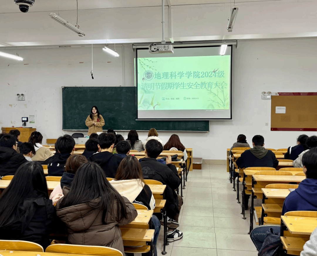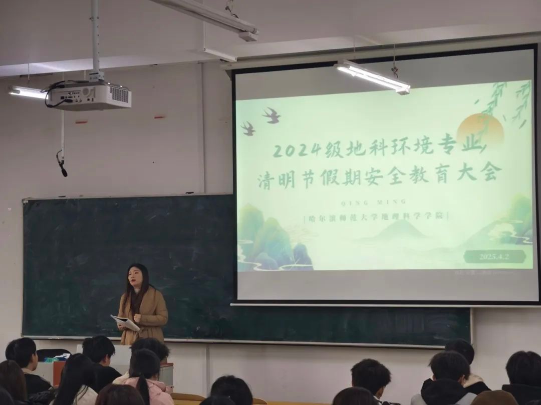 为贯彻落实学校KY.COM假期安全工作的指示精神,切实做好清明节期间学生安全教育管理,地理科学学院于2025年4月2日在理工三号楼220室、122室分别召开2024级清明节假期安全专题会议,围绕节日特点部署安全教育工作,院团委副书记、2024级辅导员郭昊昕、2024级辅导员魏钰主持会议,2024级全体学生参加。