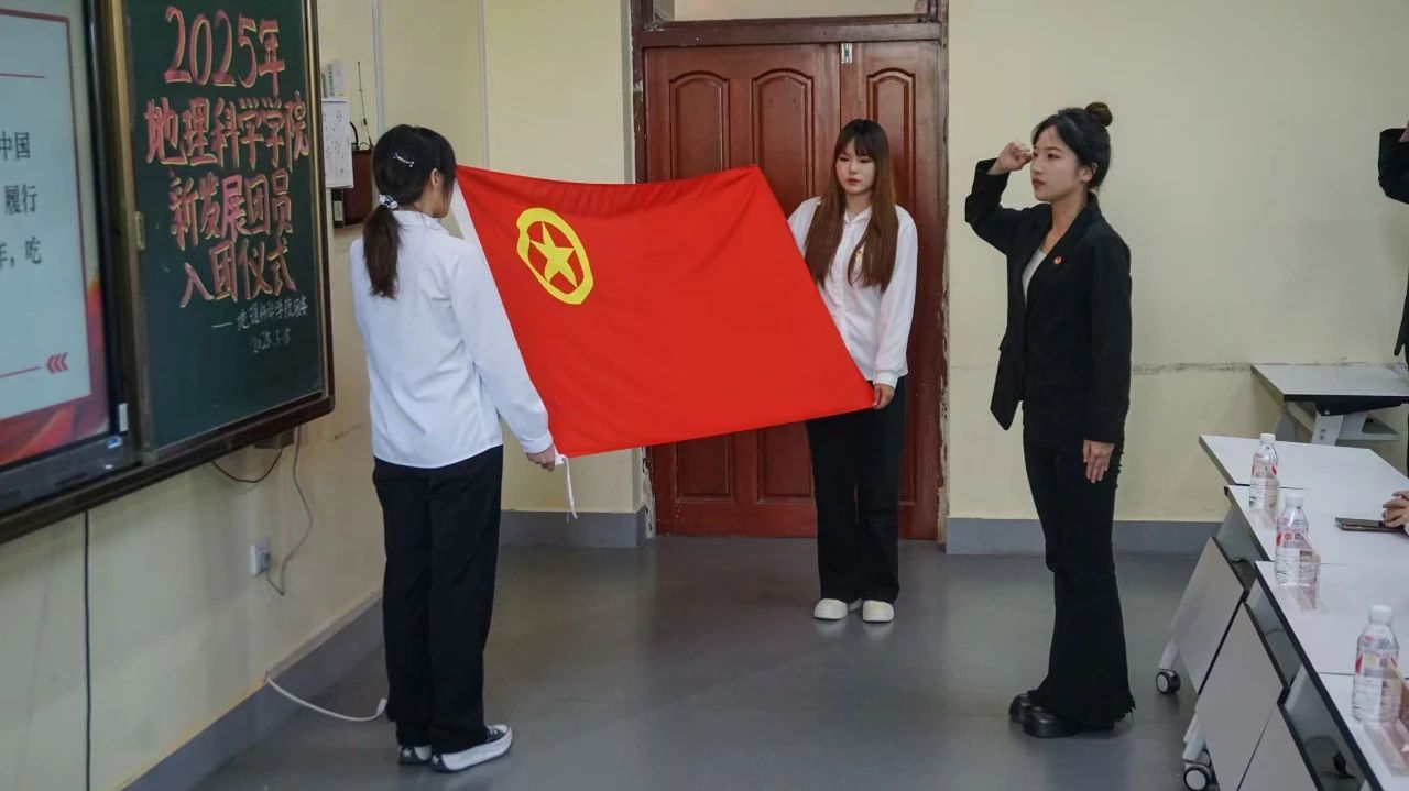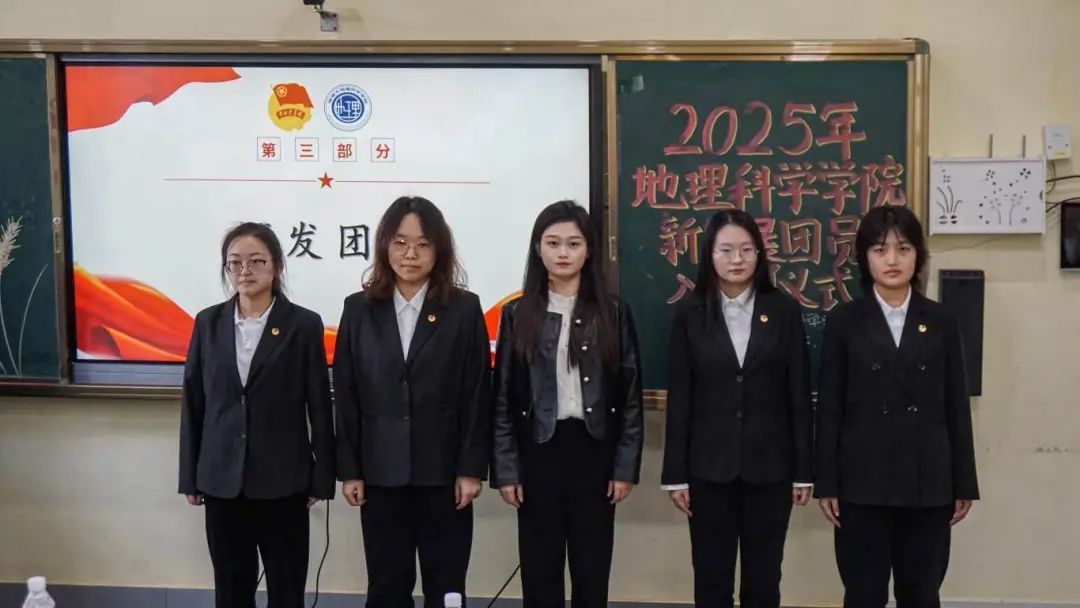 为深入学习贯彻党的二十大和二十届二中、三中全会精神,全面落实习近平总书记KY.COM青年工作的重要指示精神,扎实推进学校共青团2025年“基层组织创新年”工作方案,增强团组织的凝聚力和号召力,激励青年积极追求政治进步,为实现中国式现代化建设贡献力量,地理科学学院团委举行2025年上半年新发展团员入团仪式。学院团委副书记郭昊昕、本科生各年级辅导员及2025年上半年新发展团员参加本次入团仪式,仪式由团委组织部部长、2022级学生董思妍主持。