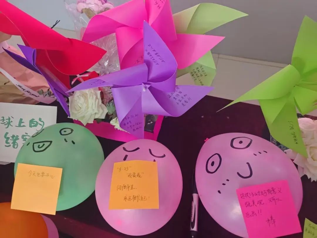 五彩风车溢彩鎏金,串联成一片风车告白区。创作者在风车叶片上书写对自我的鼓励、对友人的祝福或对未来的期许,将心声化作文字与色彩。缤纷气球相映成辉,宛如梦幻云朵轻盈飘舞。体验者们手持画笔,在气球上细细勾勒,画上表达内心的笑颜,将心底的欢愉与期许,都倾注于这方寸之间的气球之上,让喜悦与憧憬随着气球一同扶摇。“愿你成为自己的光”“拥抱此刻的温柔”……风车墙前,这些温暖的话语熠熠生辉。它们如同一条条无形的纽带,将同学们的心灵紧紧相连,让情感在静谧的氛围中缓缓流淌,温暖也在不经意间浸润着每一个人的心田。