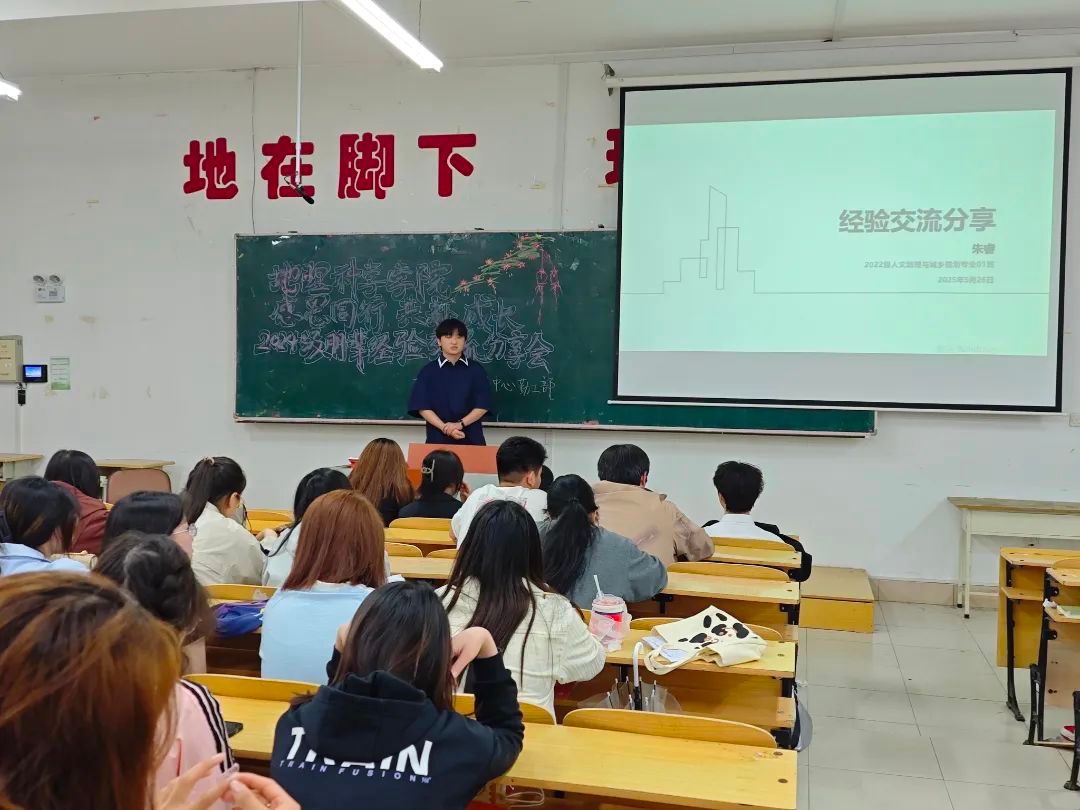 为充分发挥朋辈榜样的引领作用,助力同学们在学业与科研道路上明晰方向、汲取力量,增进不同专业和年级同学间的交流合作,营造积极向上的校园氛围,2025年5月25日,地理科学学院大学生发展中心勤工部在理工三122教室组织开展“感恩同行,共赴成长”2024级朋辈经验交流分享会。本次分享会邀请到了2022级人文地理与城乡规划专业的朱睿同学,他毫无保留地分享了自己的宝贵经验和深刻感悟。本次会议由勤工部2023级副部长张雪芹同学主持。