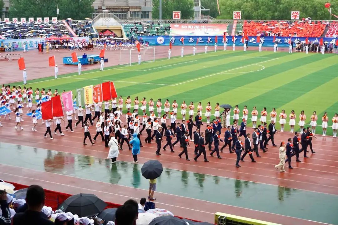 激昂的《运动员进行曲》响彻全场,我院师生方阵在猎猎旌旗下阔步前行。她们步伐铿锵有力,口号震天,以昂扬的姿态和整齐的队列,接受大会检阅。