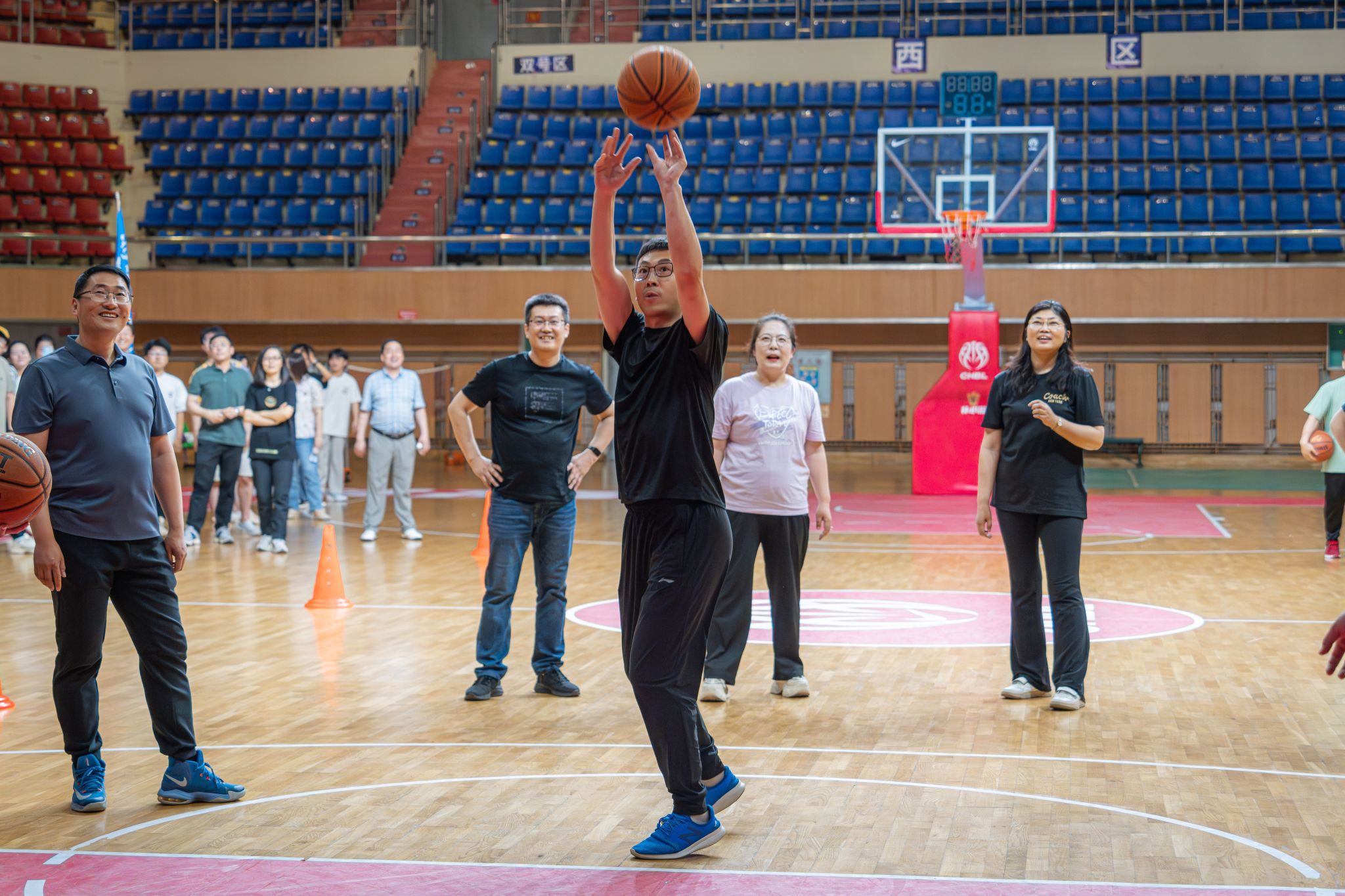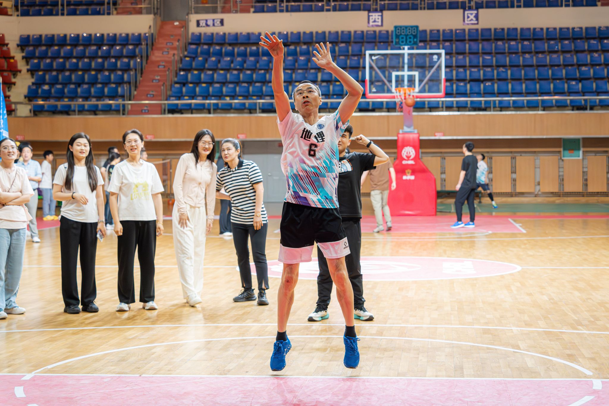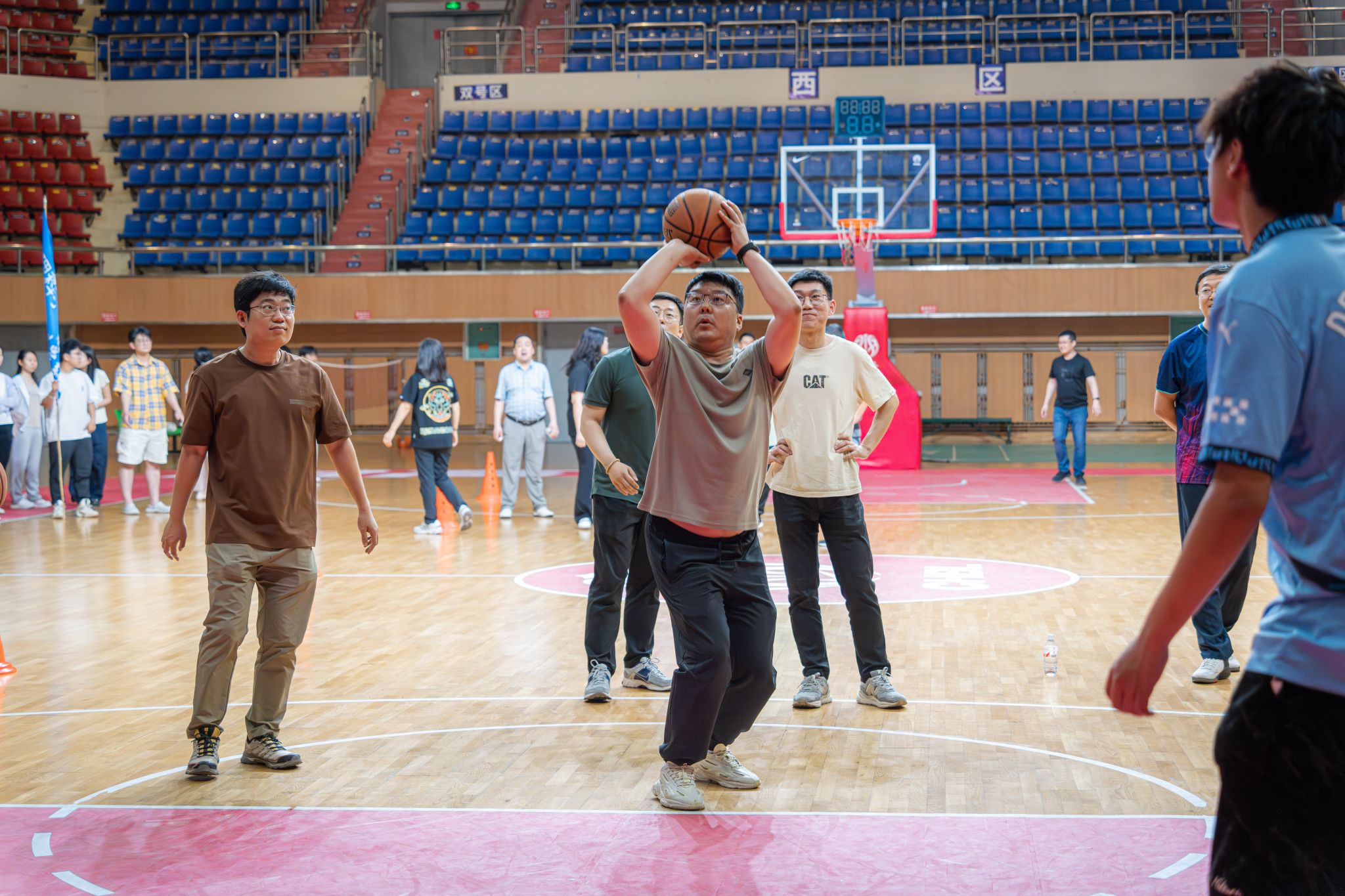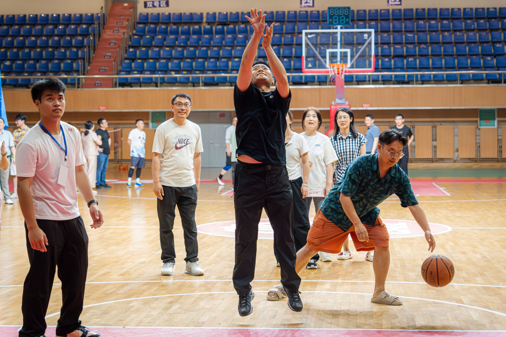 教师们化身“神射手”,全神贯注、一气呵成、频频命中,篮球在空中划过一道道优美的弧线,连续漂亮的空心入网和打板命中引爆欢呼,精准入网恰似科研中对精度的不懈追求。