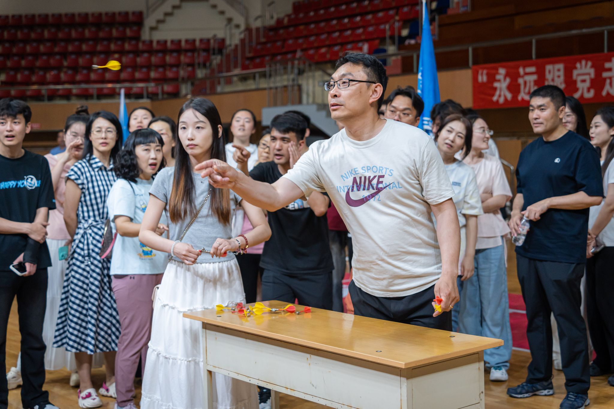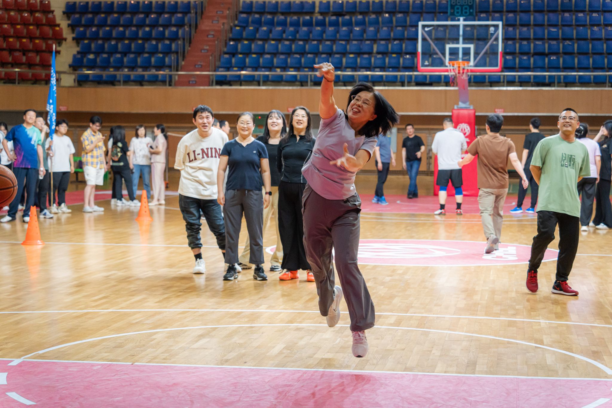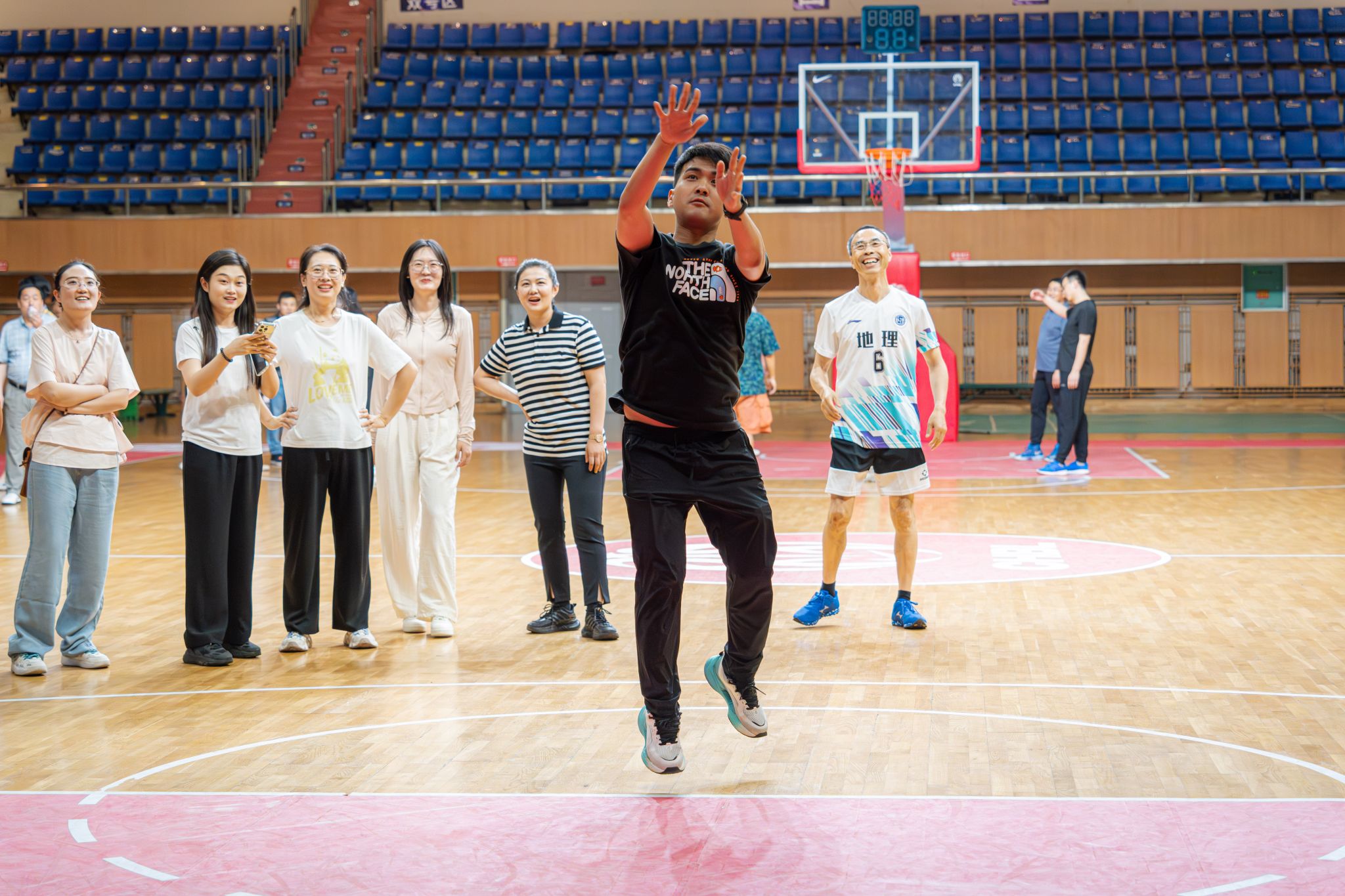 教师们化身“神射手”,全神贯注、一气呵成、频频命中,篮球在空中划过一道道优美的弧线,连续漂亮的空心入网和打板命中引爆欢呼,精准入网恰似科研中对精度的不懈追求。