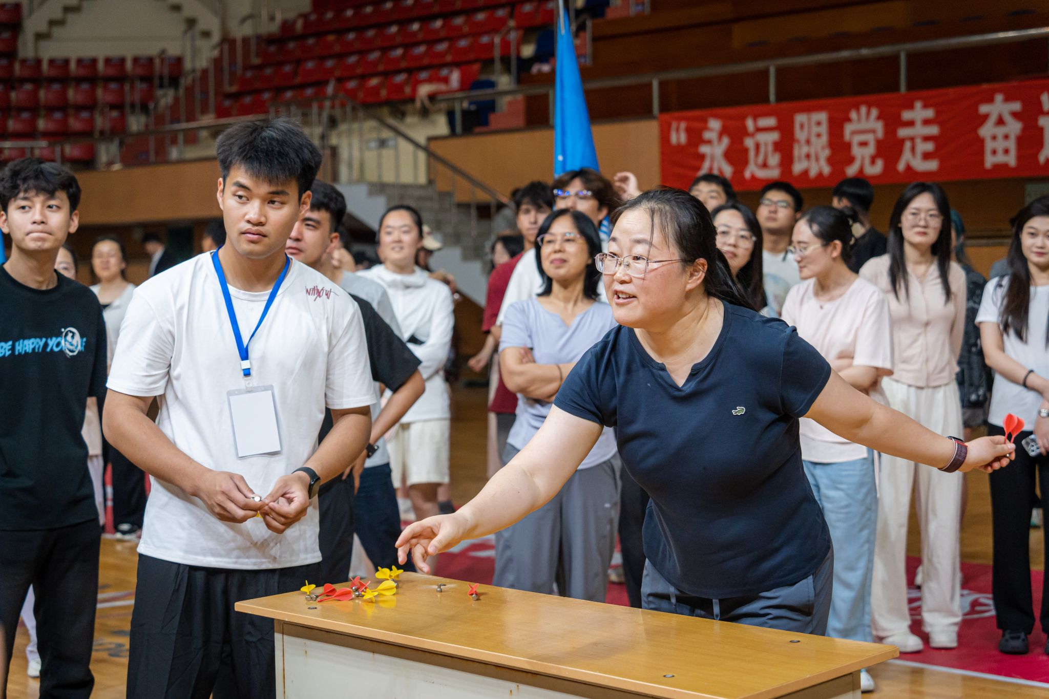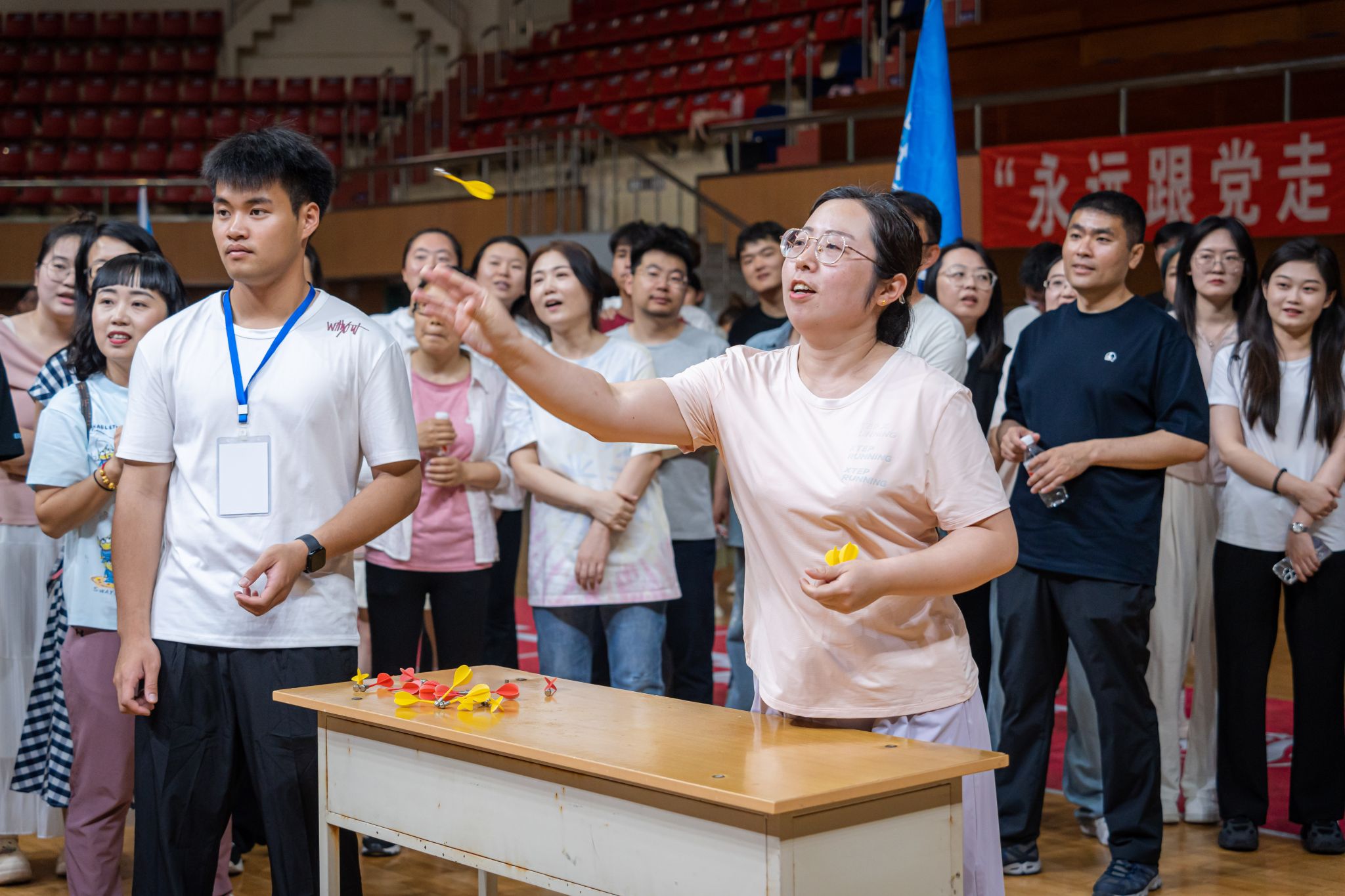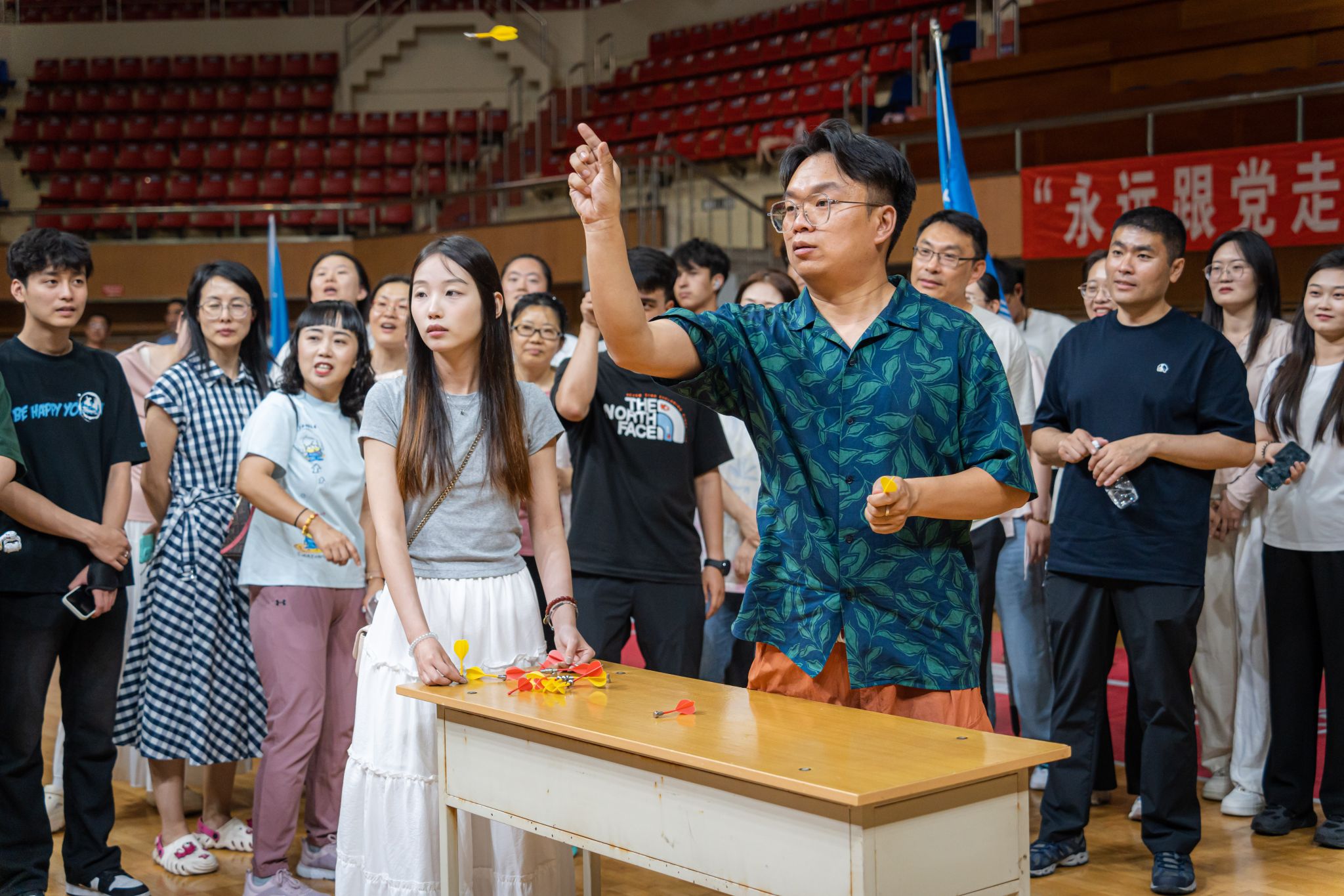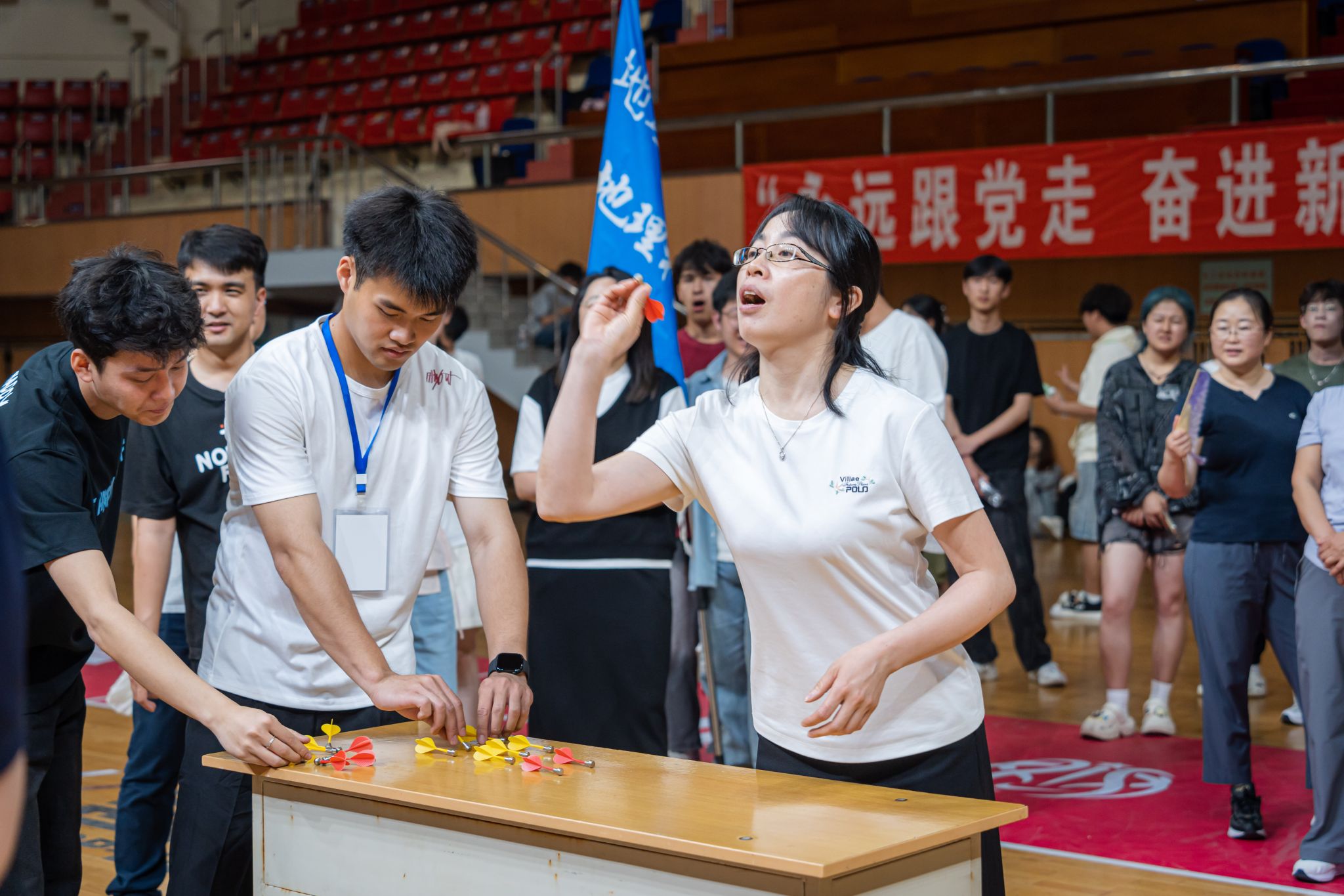 教师们化身“神射手”,全神贯注、一气呵成、频频命中,篮球在空中划过一道道优美的弧线,连续漂亮的空心入网和打板命中引爆欢呼,精准入网恰似科研中对精度的不懈追求。