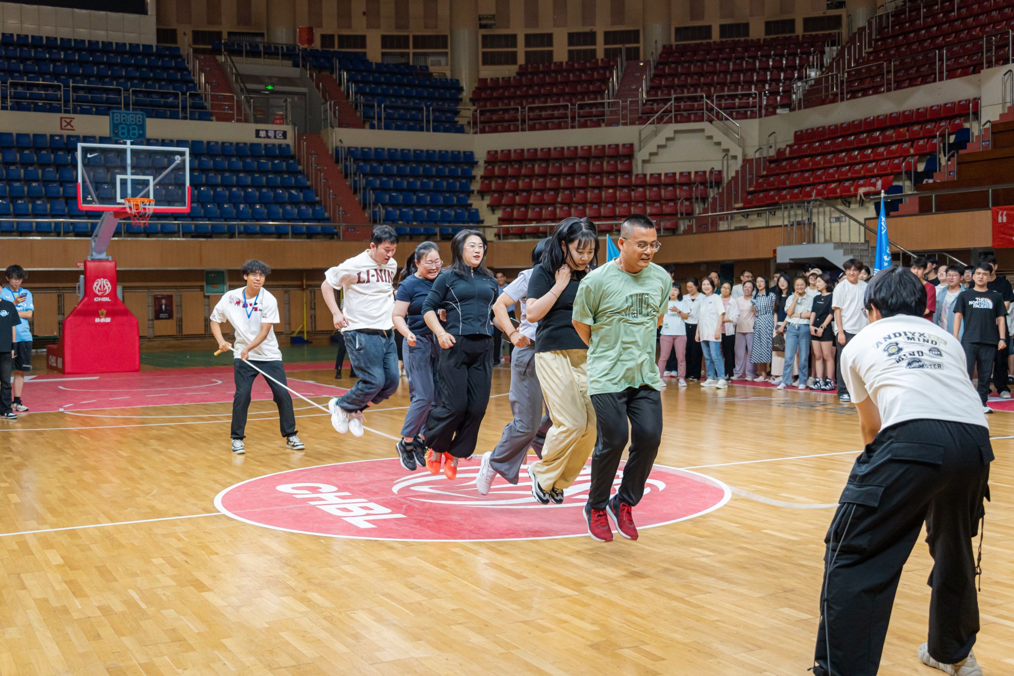 在惊心动魄的1分钟时间内,在快速跳动的长绳间,老师们配合默契、动作敏捷,完美演绎了团队节奏与协作的共振。每一次跳跃,都伴随着欢声笑语,彰显着活力与团结。