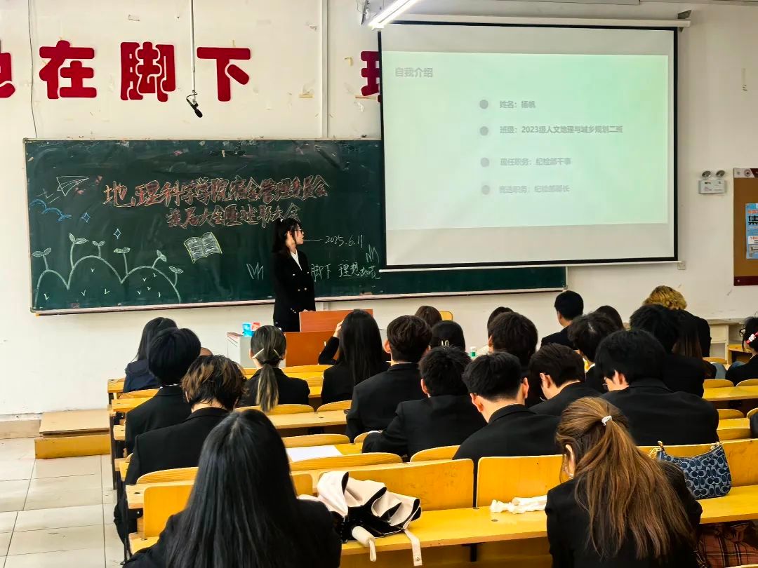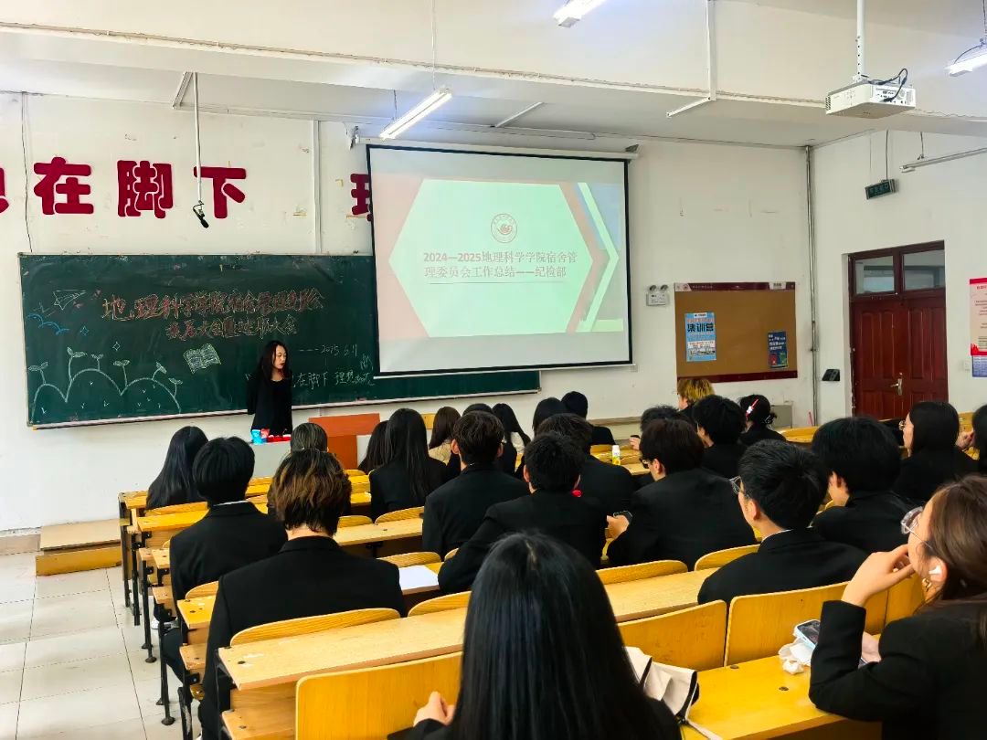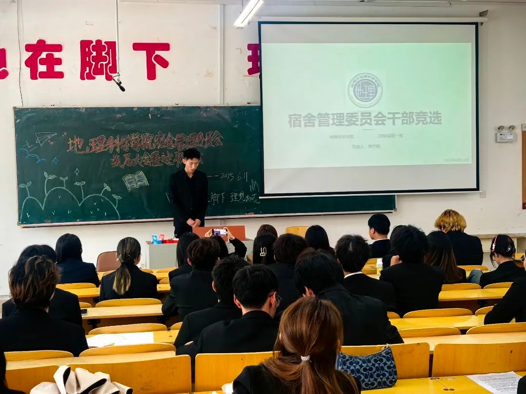 为切实响应《普通高等学校学生管理规定》中学生 “自我管理、自我服务、自我教育、自我监督” 的工作要求,持续深化 “三全育人” 综合改革,推动宿舍管理工作朝着规范化、专业化的方向发展,6月25日下午,地理科学学院宿舍管理委员会于理工三号楼320室开展了2024-2025学年换届大会,地理科学学院2024级辅导员、舍委会指导老师魏钰出席会议,舍委会全体成员参加会议。
