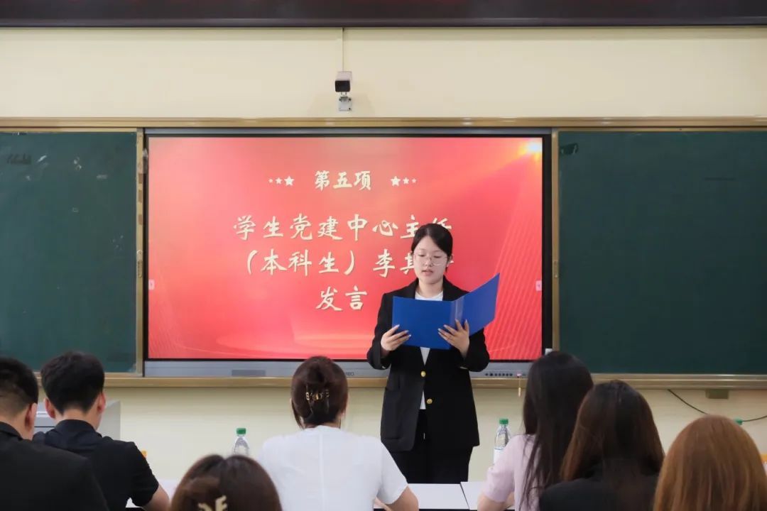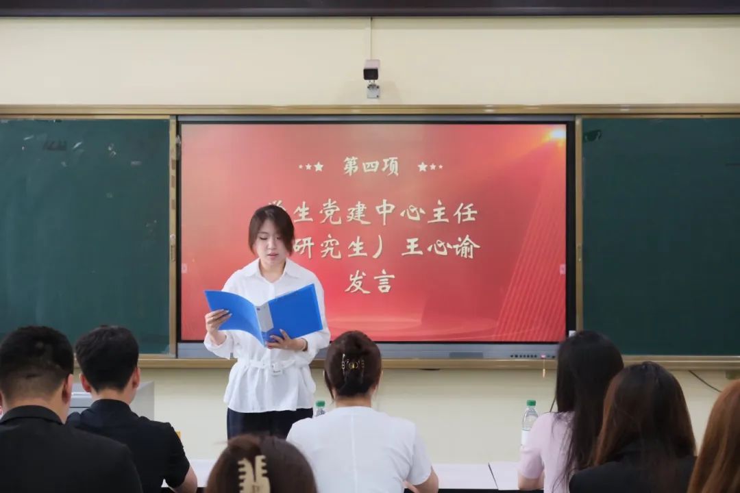 学生党建中心主任王心谕(研究生)、李其泽(本科生)先后上台,代表第一届学生党建中心全体成员作表态发言,表示将永葆对学生党建工作的高涨热情,在工作中勇于创新、与时俱进、勤于吃苦、乐于奉献,努力成为学生党建工作的坚实桥梁和纽带,用实际行动书写学生党建工作的辉煌篇章。