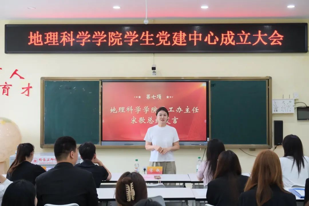 为深入学习贯彻习近平新时代中国特色社会主义思想,贯彻落实党的二十大和二十届三中全会精神,推进学生党建工作程序化、规范化、科学化,助力学院党建工作高质量发展,2025年6月26日13:30,地理科学学院在理工三215室召开学生党建中心成立大会。学院党委委员、学工办主任宋歌,学院党委委员、团委副书记郭昊昕,全体辅导员以及学生党建中心全体成员参会。本次大会由郭昊昕老师主持。