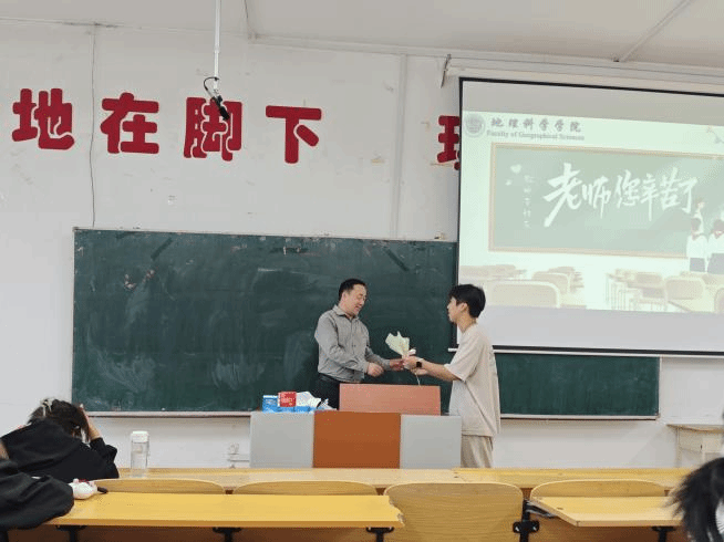 新竹高于旧竹枝,全凭老干为扶持。地理学子将满腔祝福倾注在一张张精心绘制的贺卡之中。这些贺卡不仅承载着数不清的师生情谊,更传递出莘莘学子发自肺腑的感恩之心。怀中一束束的鲜花,既代表着对老师辛勤教诲的诚挚感谢,也象征着师恩如阳光般温暖,始终守护着学子在求知的道路上无畏前行。您以言传身教为我们秉烛照明,以无私胸怀点燃奉献之火,这份崇高的师德,深深烙印在我们心中。谨以最真挚的情意与感恩,向您致以最崇高的敬意。