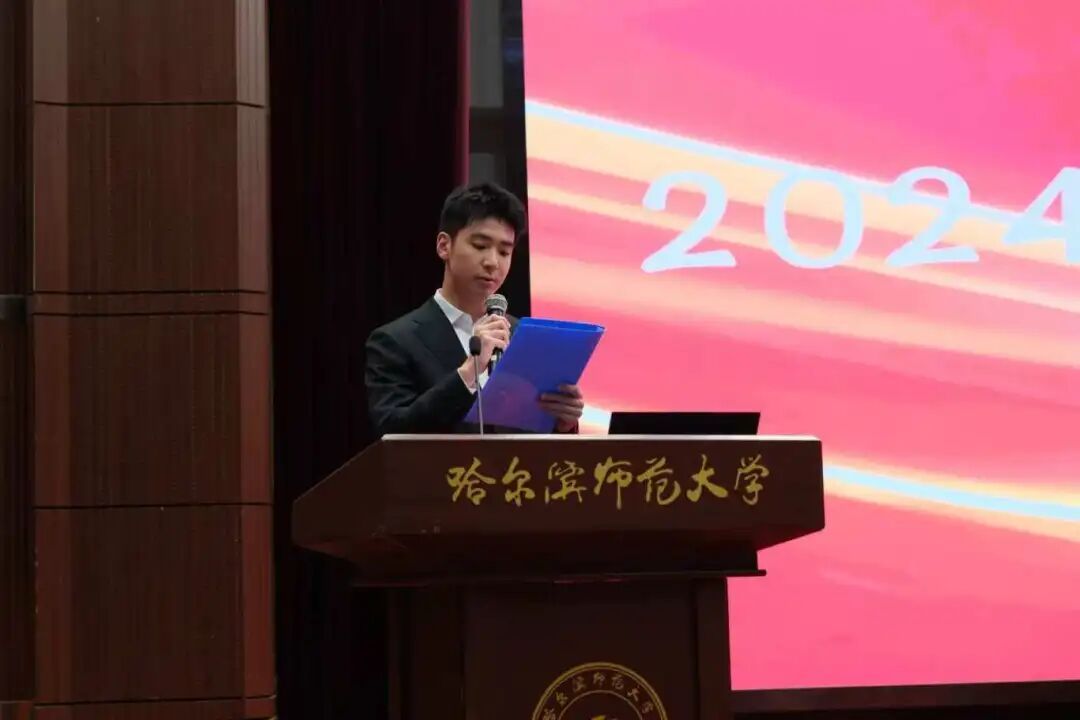 秋风送爽启新程,扬帆远航谱华章。为贯彻落实《哈尔滨师范大学大学生思想政治教育“112349”工作模式实施方案》,按照学校KY.COM新生入学教育的工作要求,9月19日下午,地理科学学院2025级新生开学典礼在科学会堂隆重举行。地理科学学院党委书记张立辉、院长张冬有、党委副书记代起君、副院长张玉红、学工办主任宋歌、办公室主任胡绍财、地理信息科学系主任齐少群、院工会副主席兼本科教学秘书马玉妍以及三办全体行政人员、2025级本硕博全体新生参加典礼。典礼由党委副书记代起君主持。